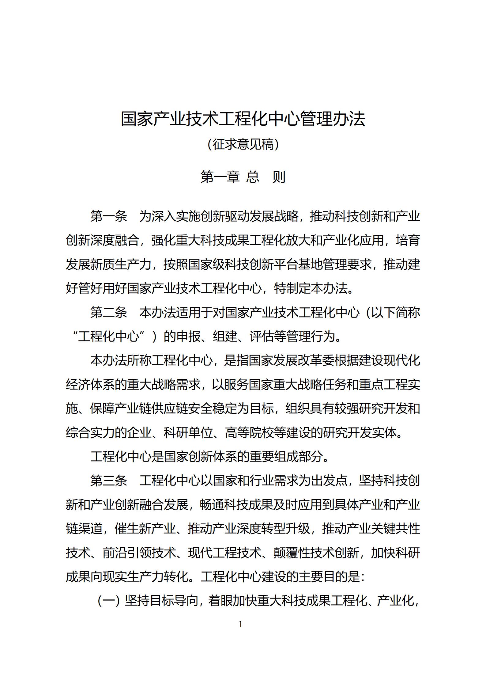 為深入落實黨中央、國務院決策部署,堅定實施創新驅動發展戰略,推動科技創新和產業創新深度融合,建好管好用好國家新興產業創新中心和國家產業技術工程化中心,我們起草了《國家新興產業創新中心管理辦法(征求意見稿)》《國家產業技術工程化中心管理辦法(征求意見稿)》,現向社會公開征求意見。