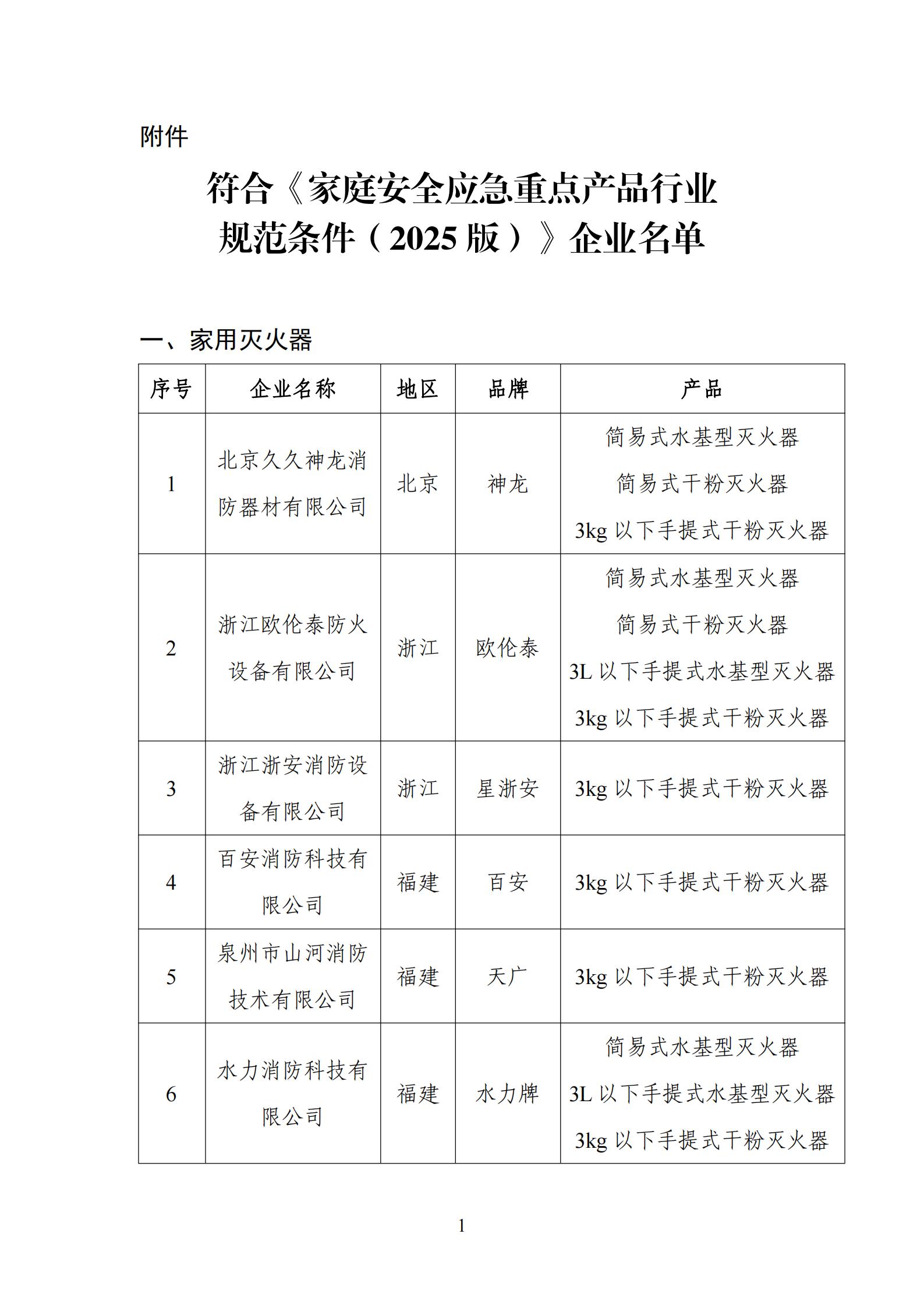 符合《家庭安全應急重點產品行業規范條件(2025版)》企業名單公示