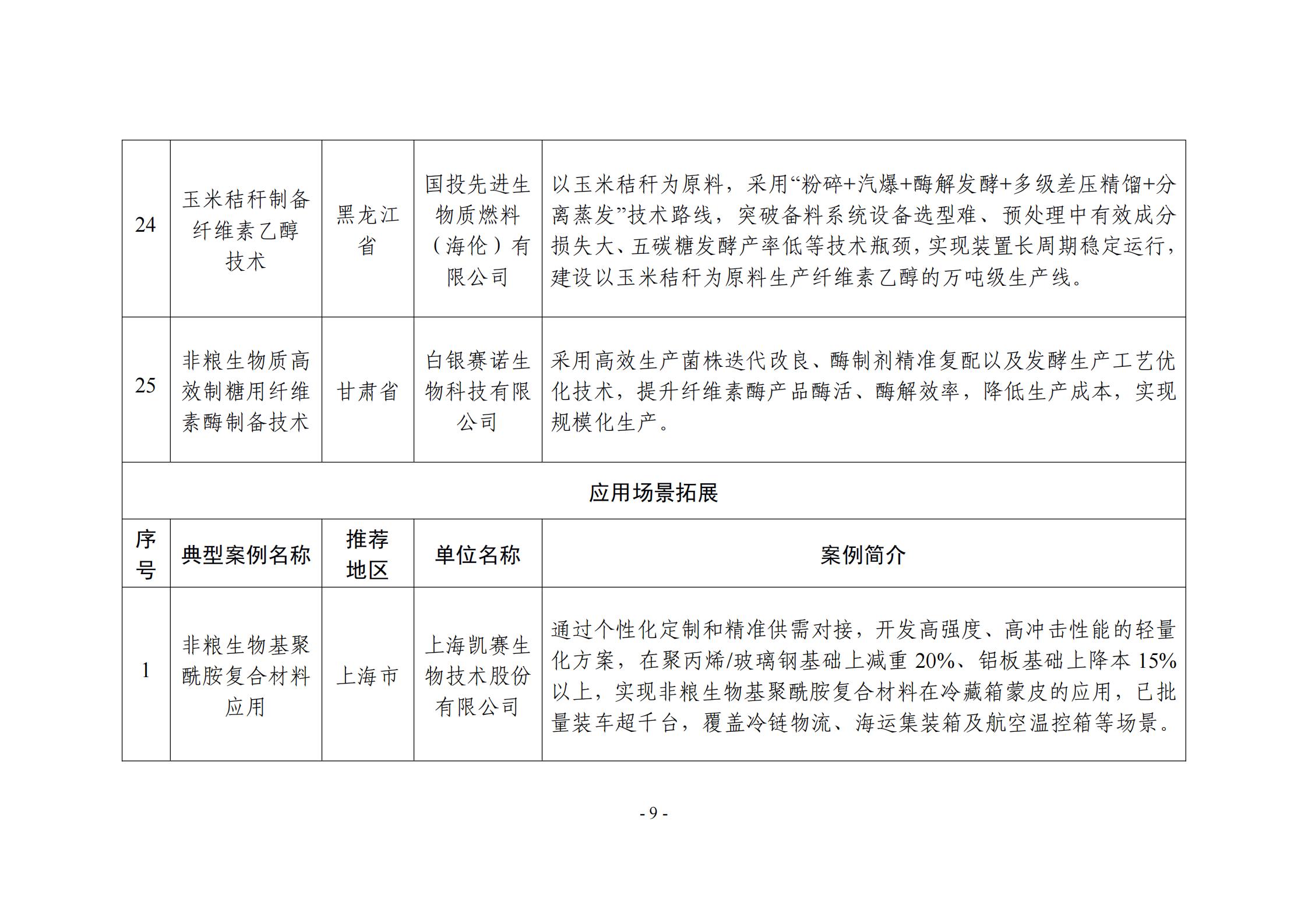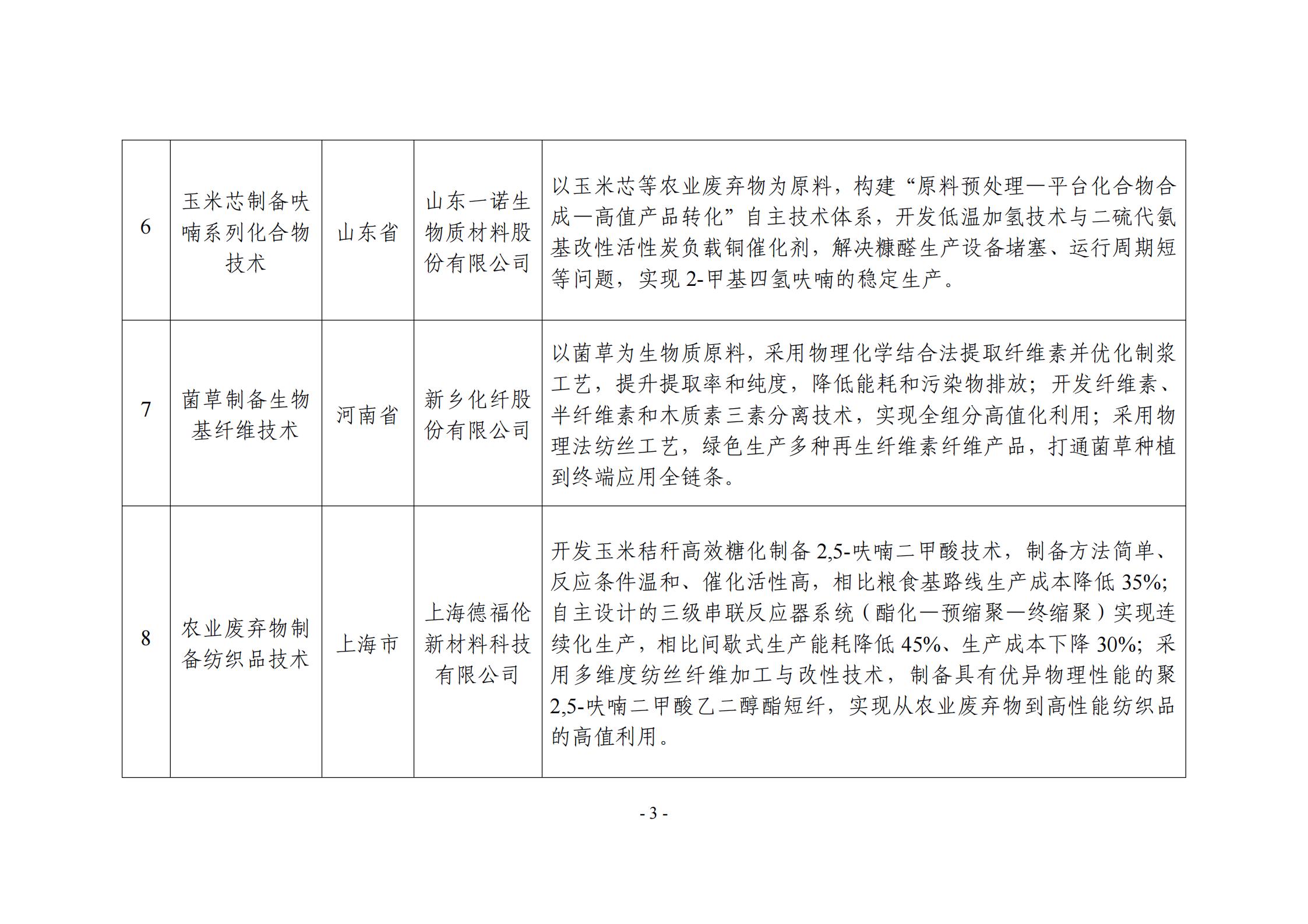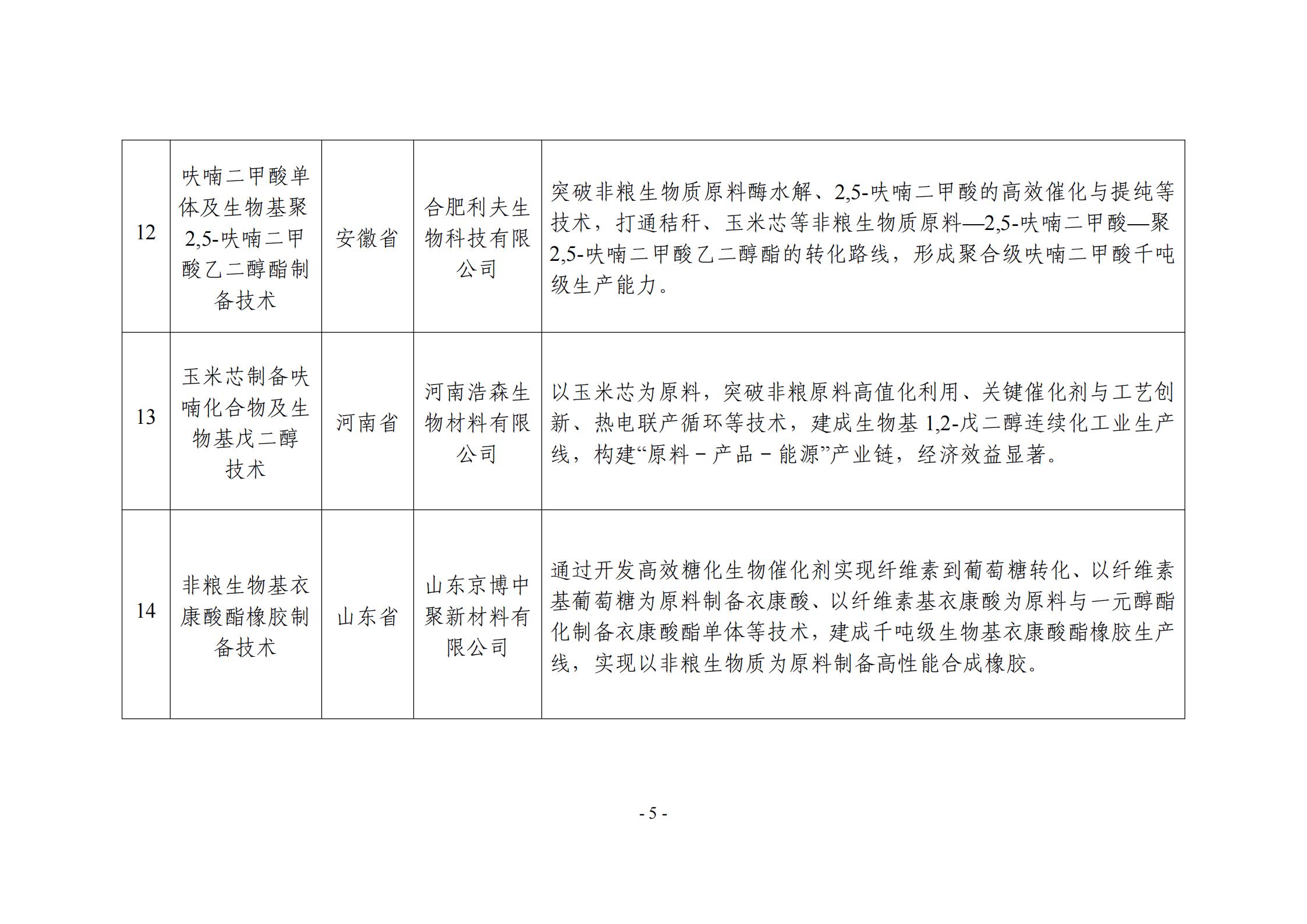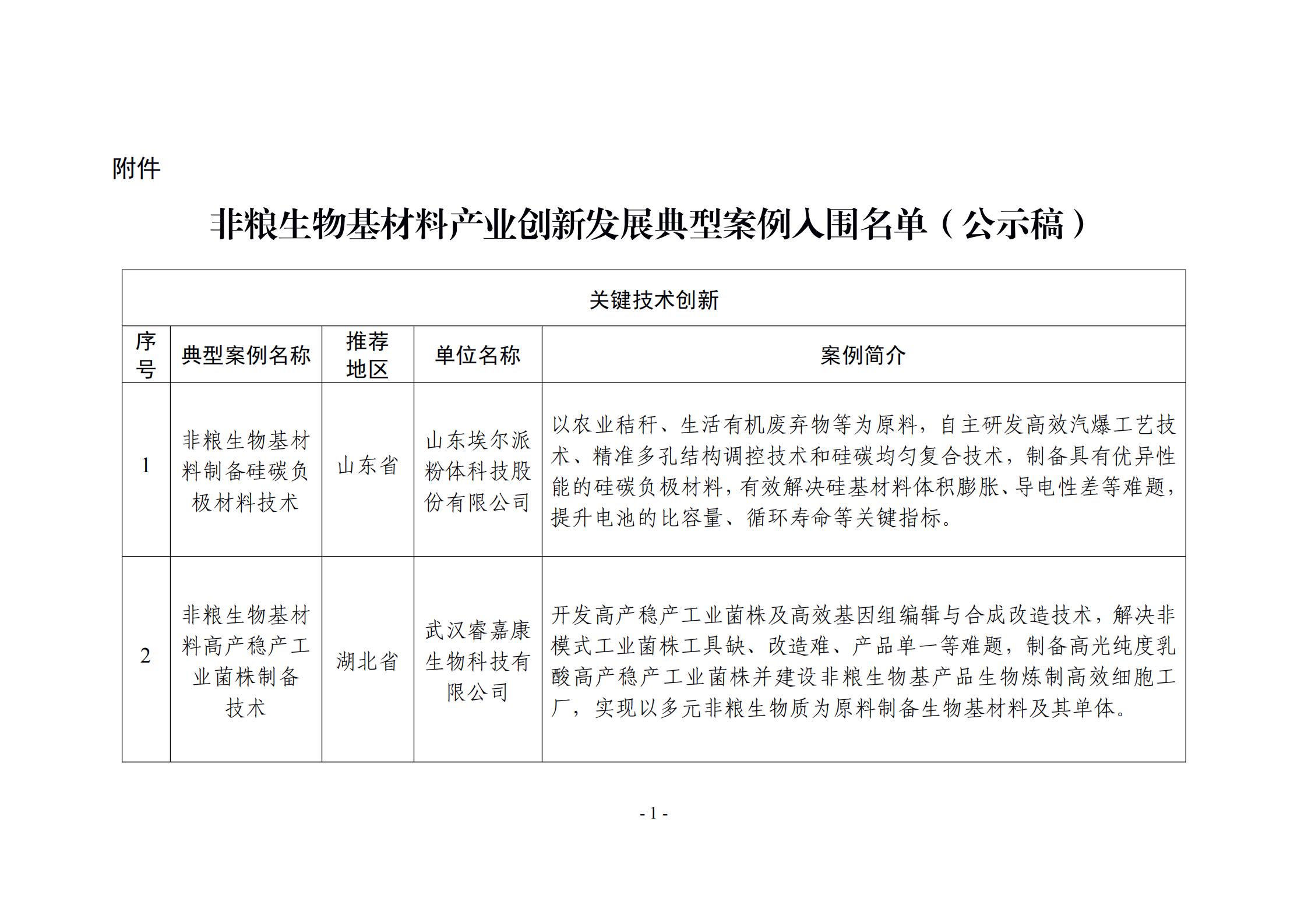 附件:非糧生物基材料產業創新發展典型案例入圍名單(公示稿)