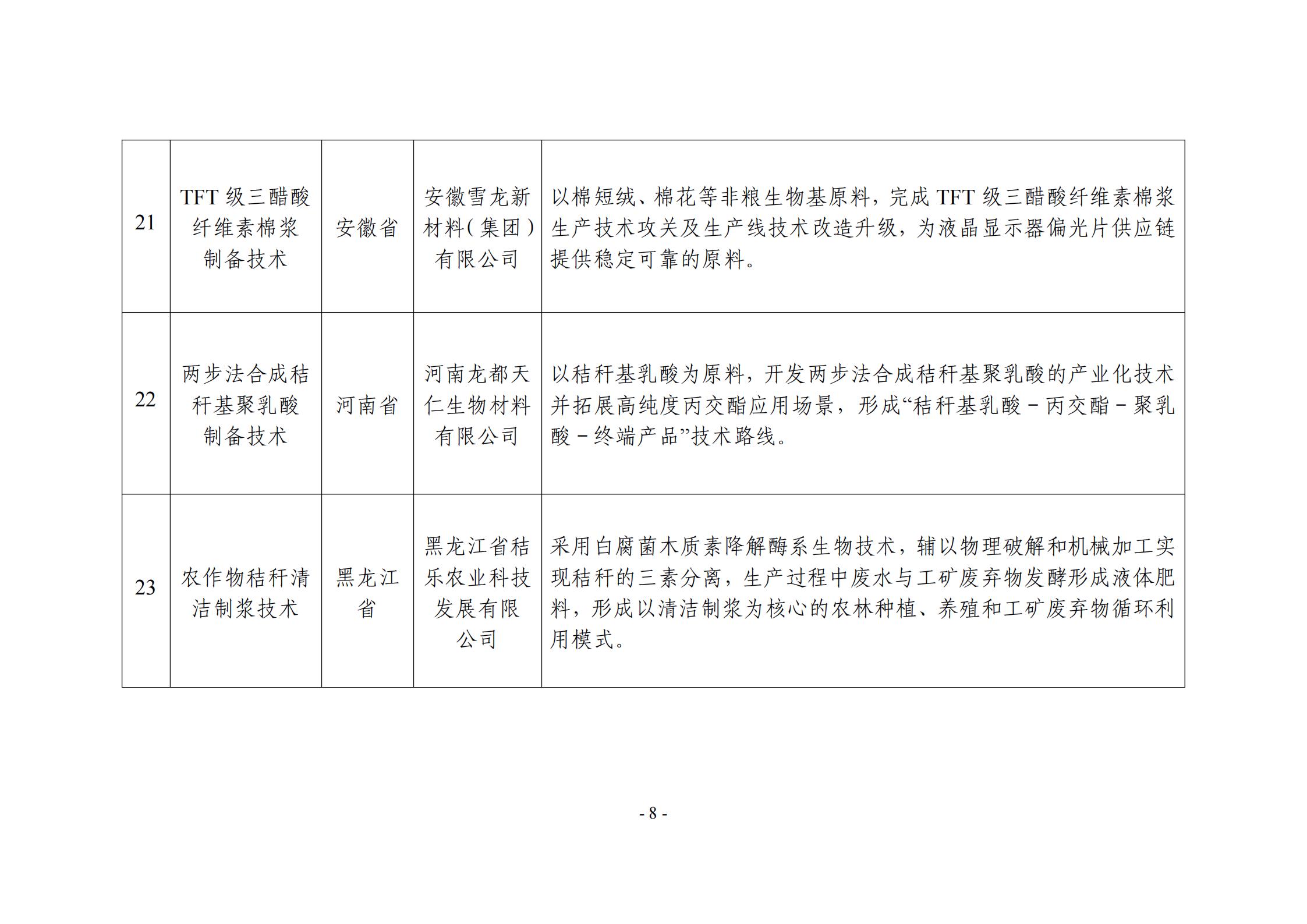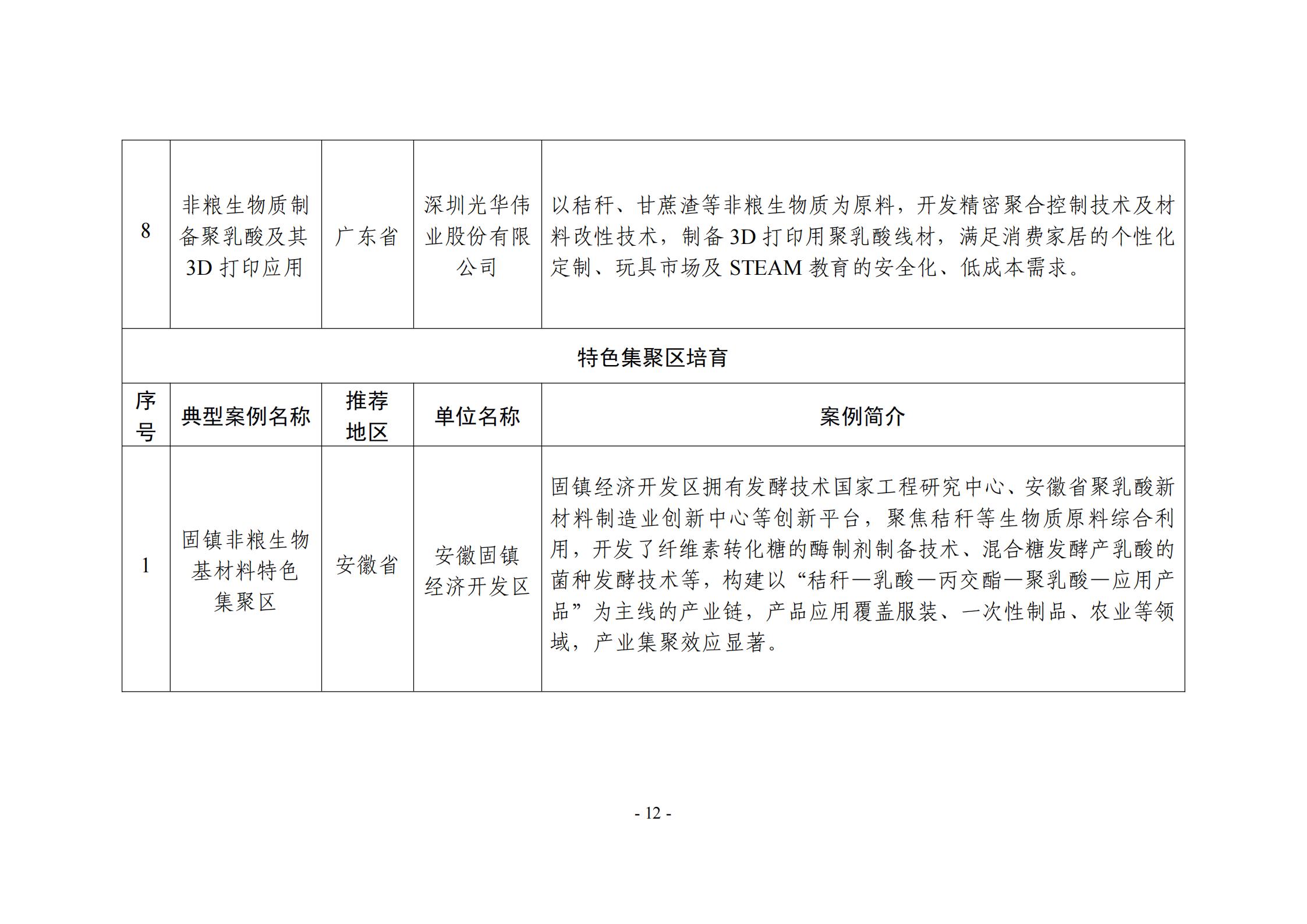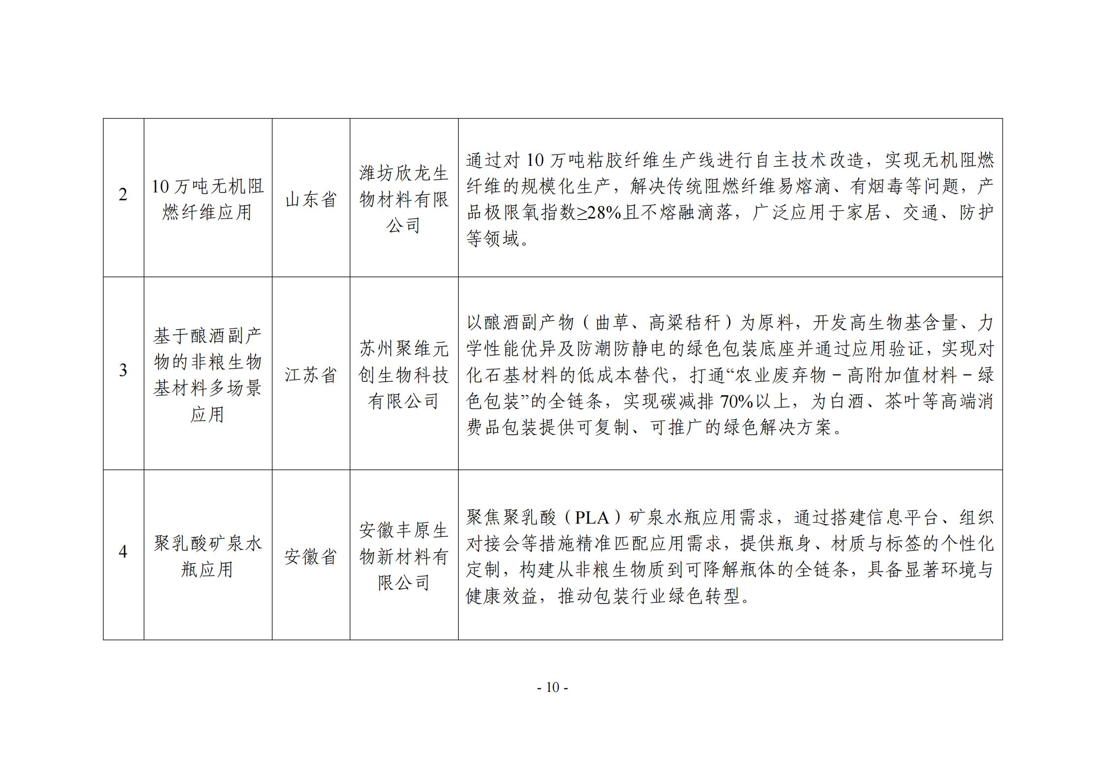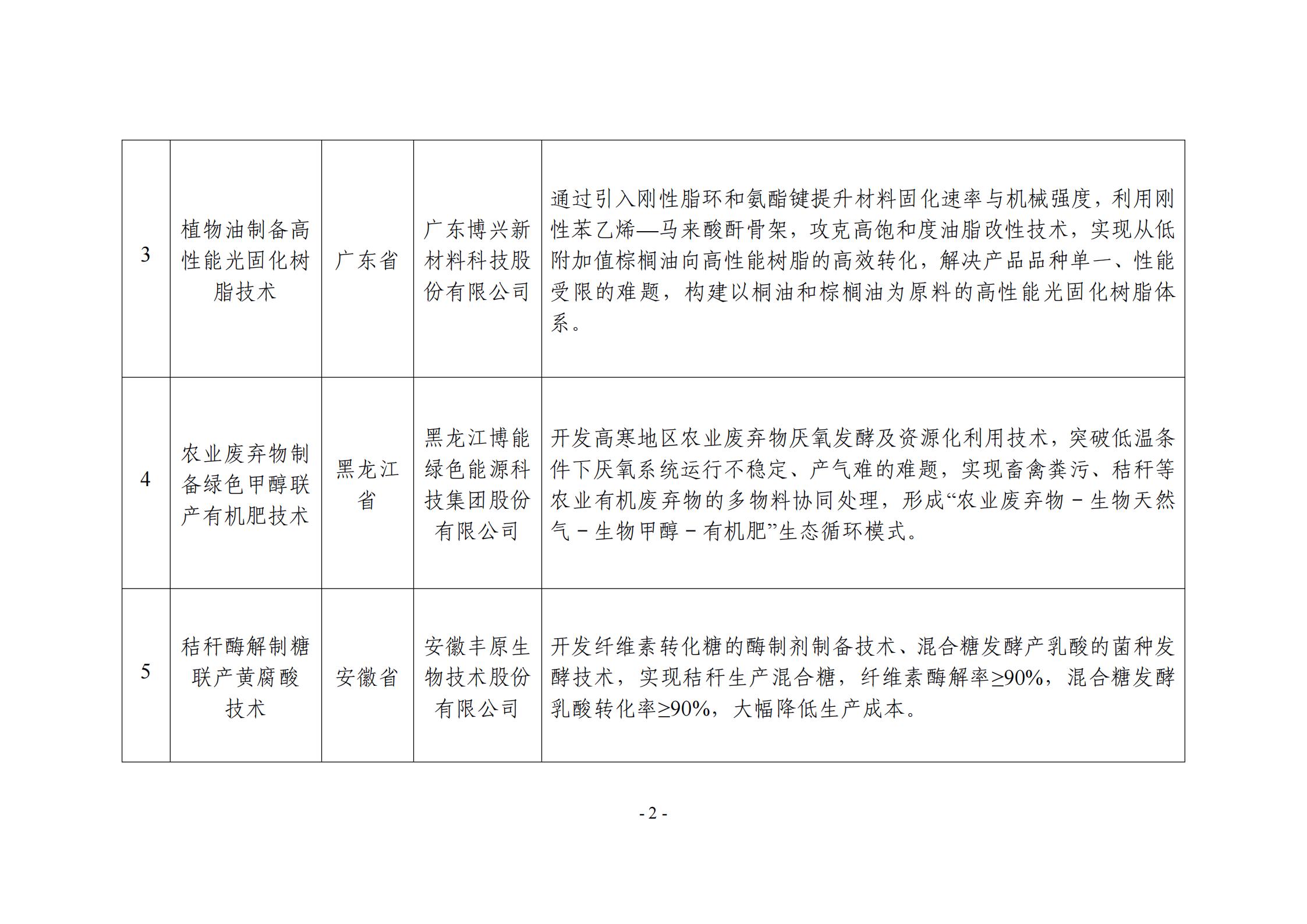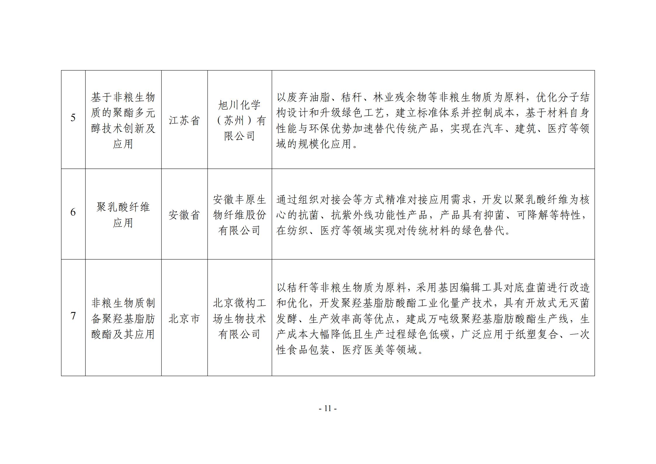 附件:非糧生物基材料產業創新發展典型案例入圍名單(公示稿)