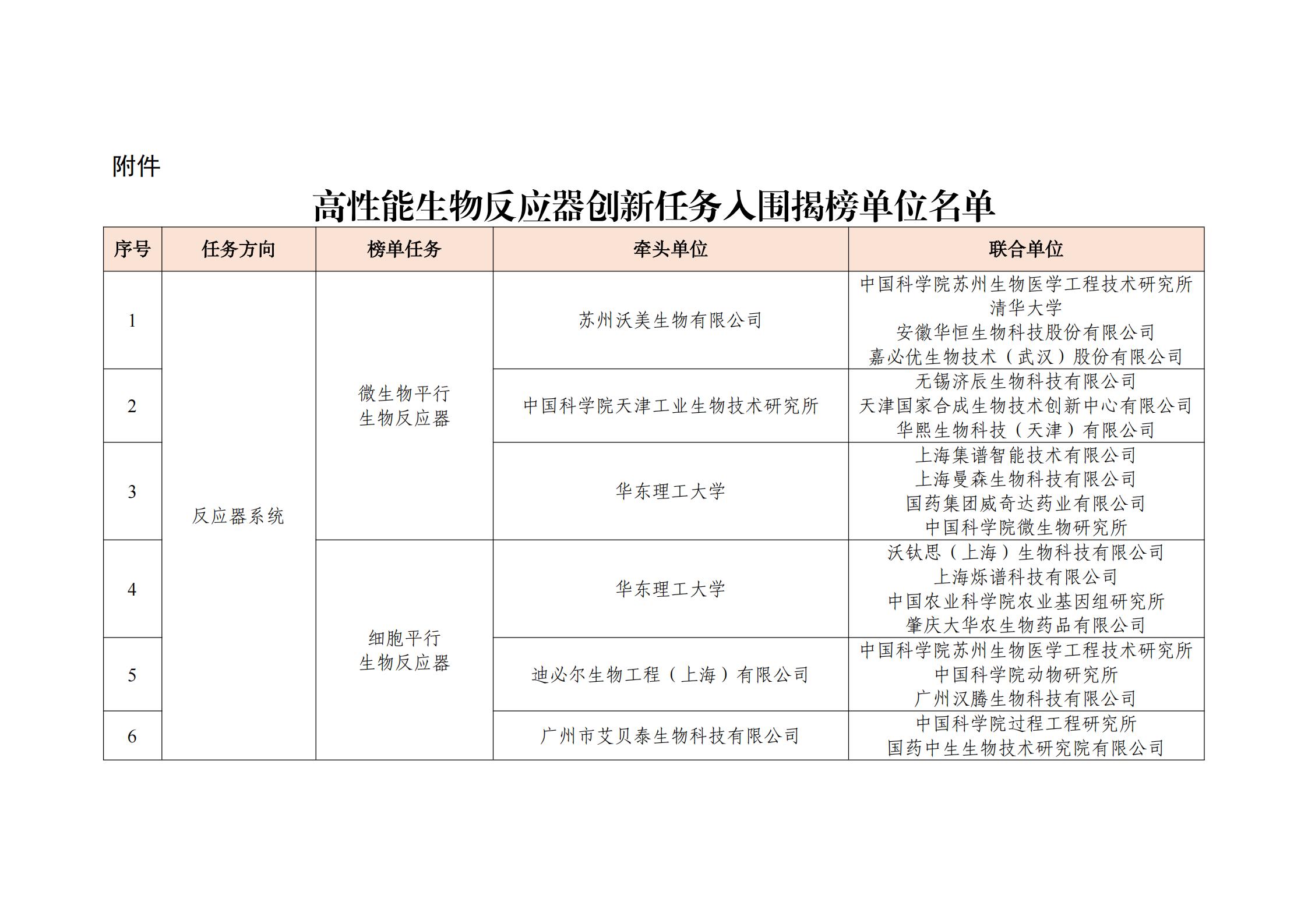 附件:高性能生物反應(yīng)器創(chuàng)新任務(wù)入圍揭榜單位名單