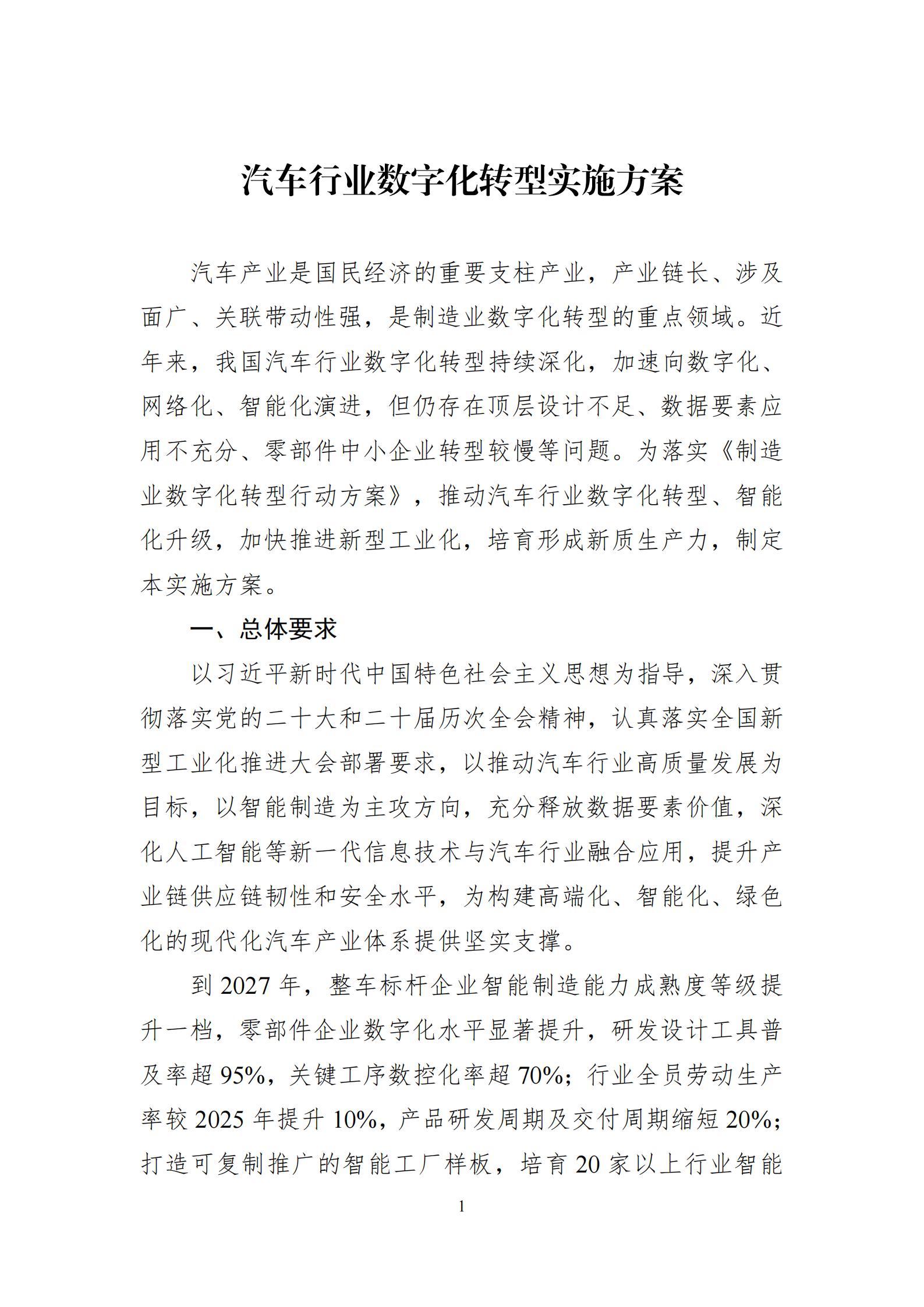現將《汽車行業數字化轉型實施方案》印發給你們,請結合實際認真抓好落實。