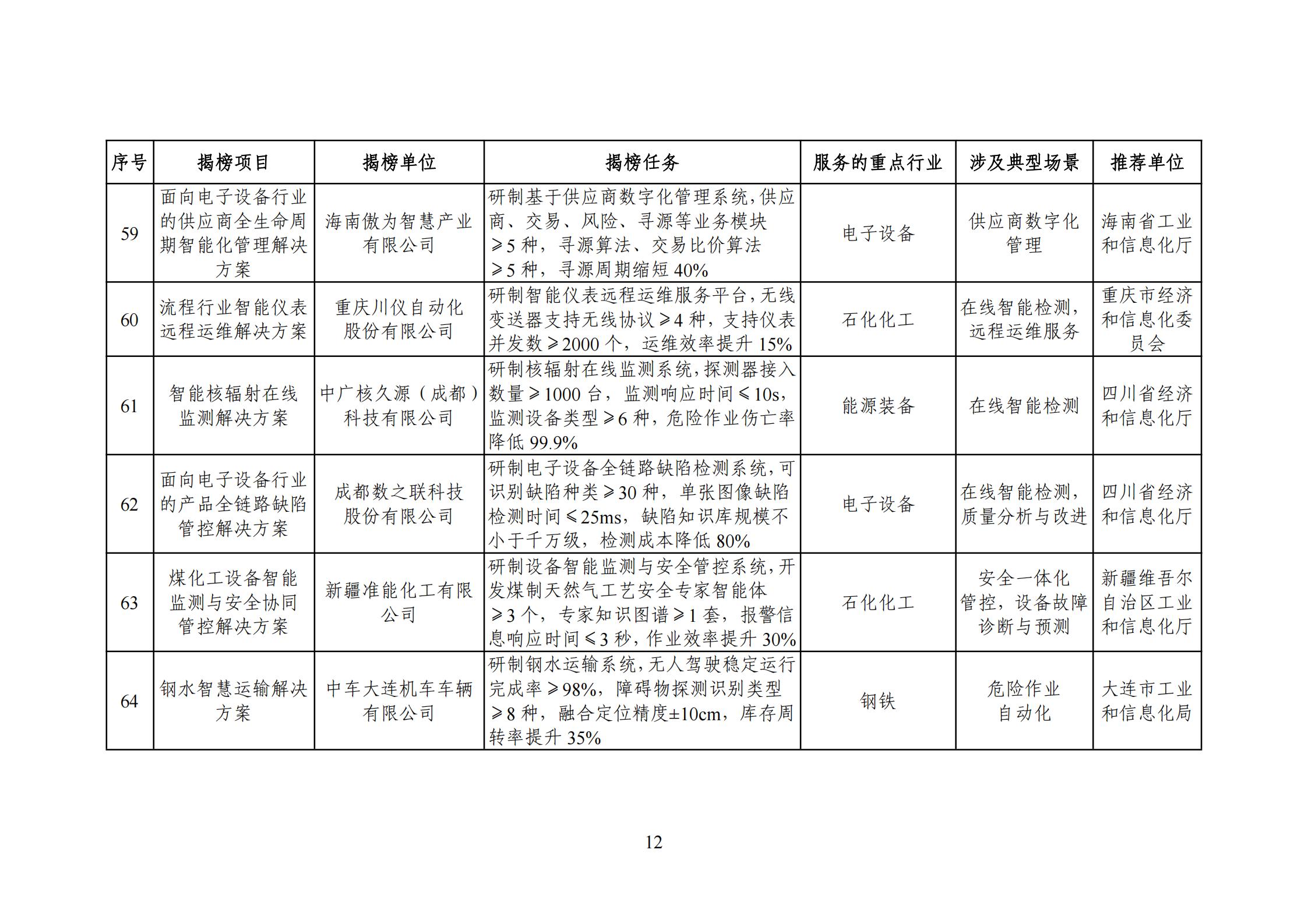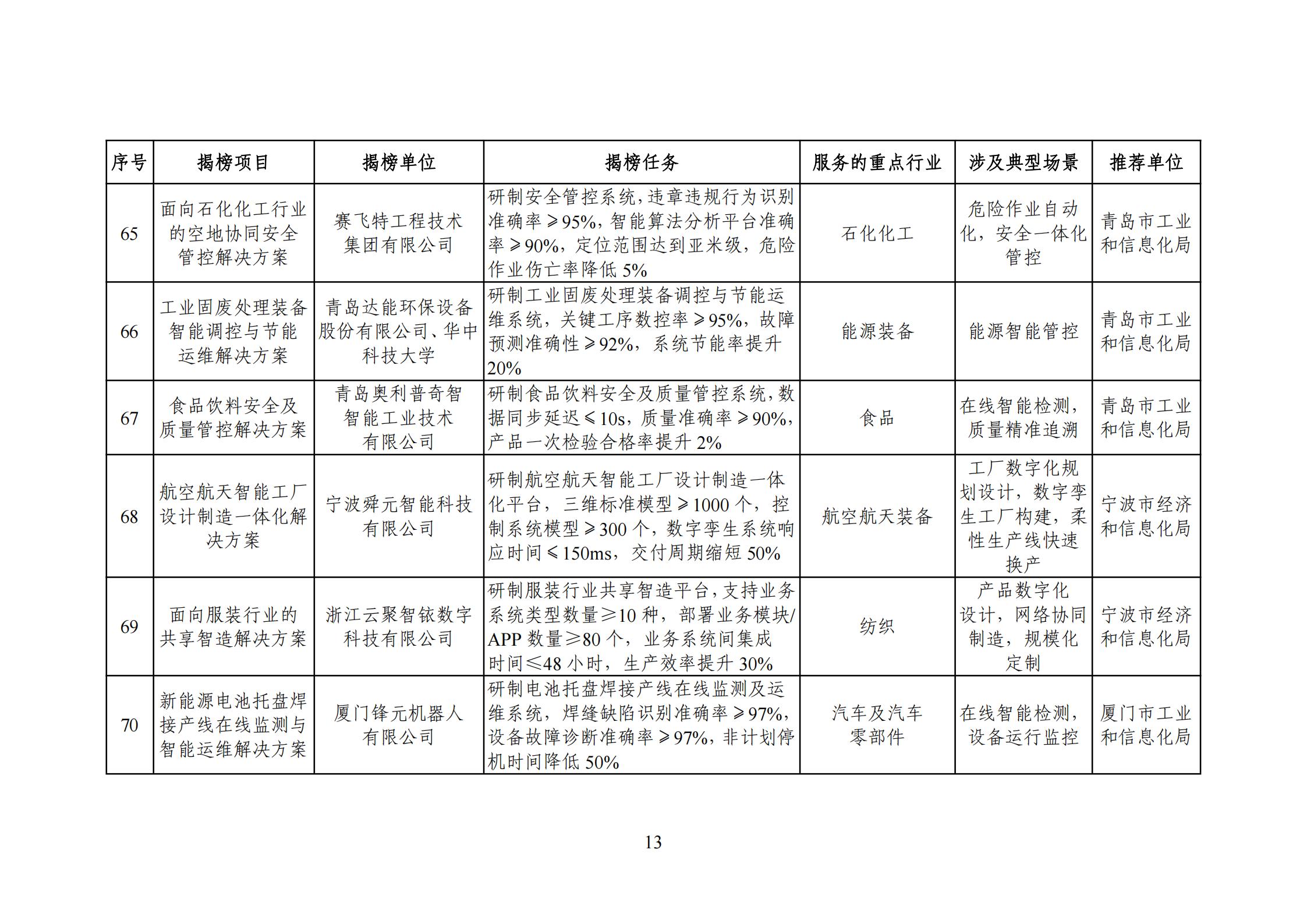 工業(yè)和信息化部辦公廳 市場監(jiān)管總局辦公廳關(guān)于印發(fā)2025年度智能制造系統(tǒng)解決方案“揭榜掛帥”項目名單的通知