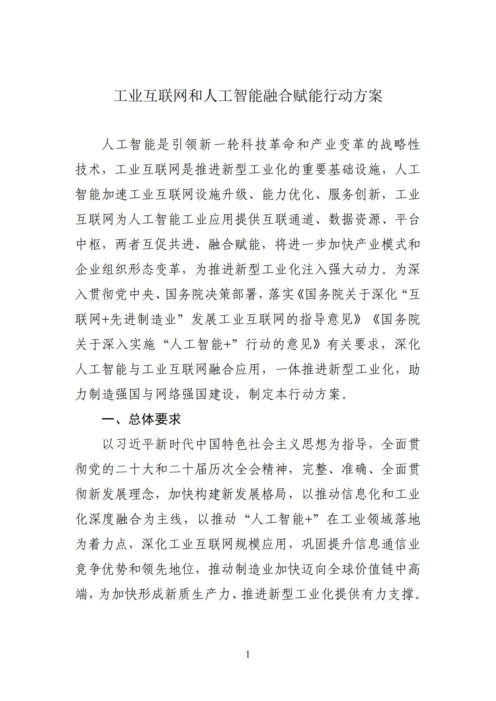 工業和信息化部辦公廳關于印發《工業互聯網和人工智能融合賦能行動方案》的通知