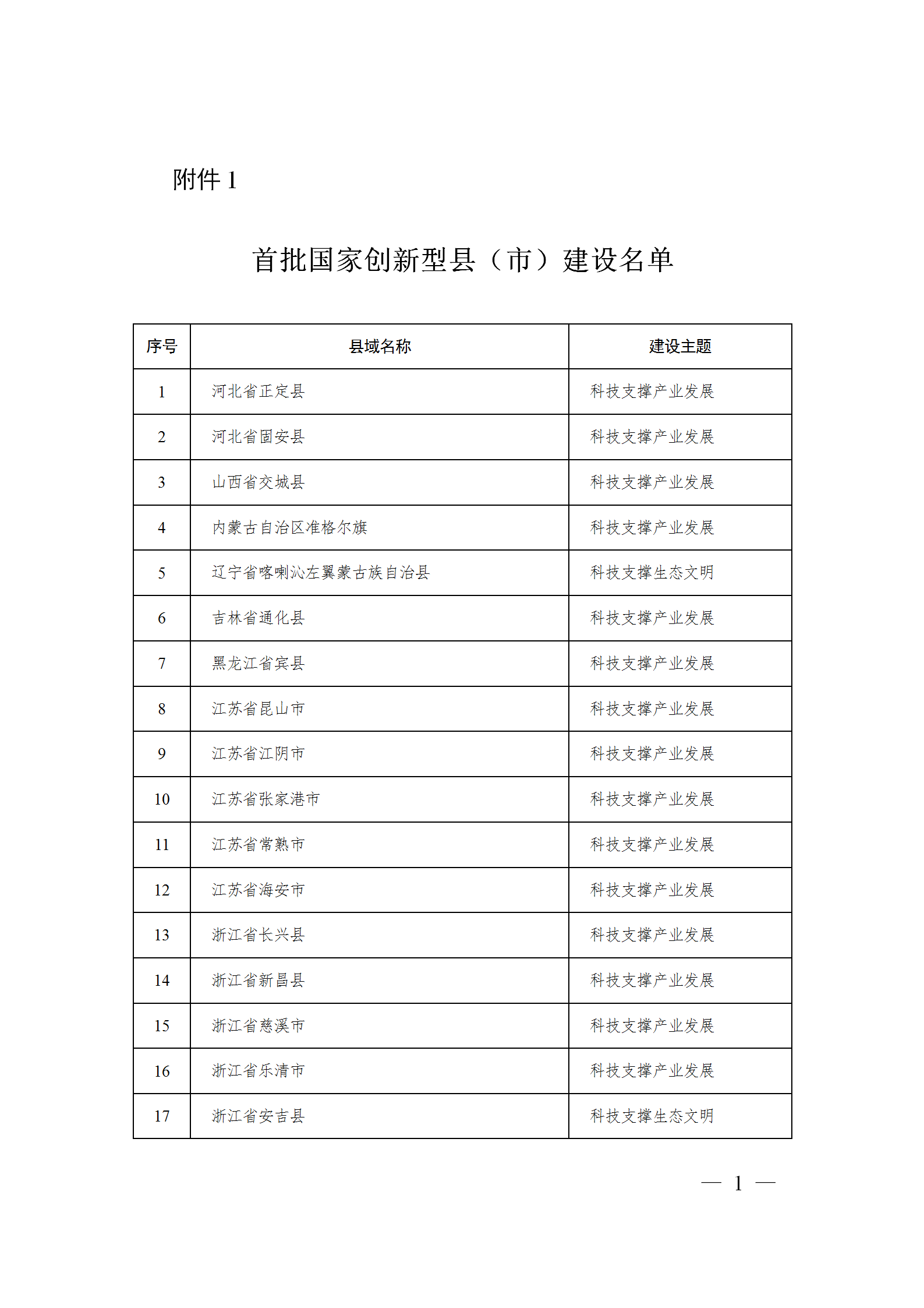 附件:1. 首批國家創新型縣(市)建設名單