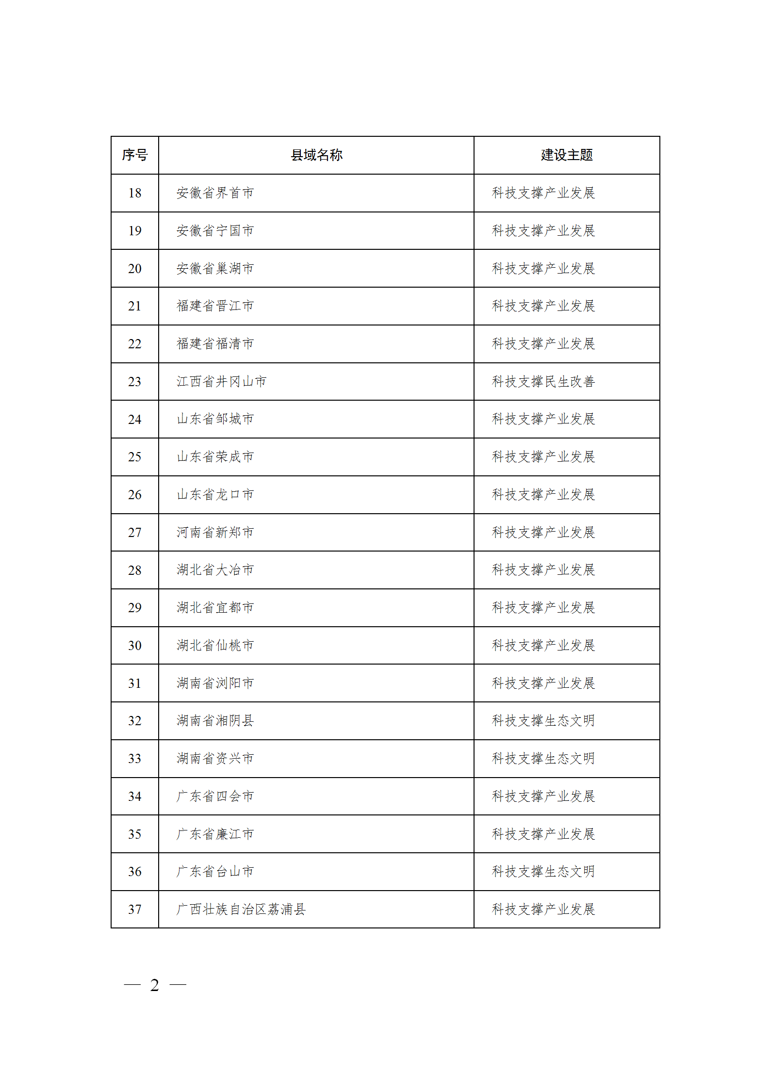 科技部2018年12月批復建設的首批52個創新型縣(市)(附件1)。
