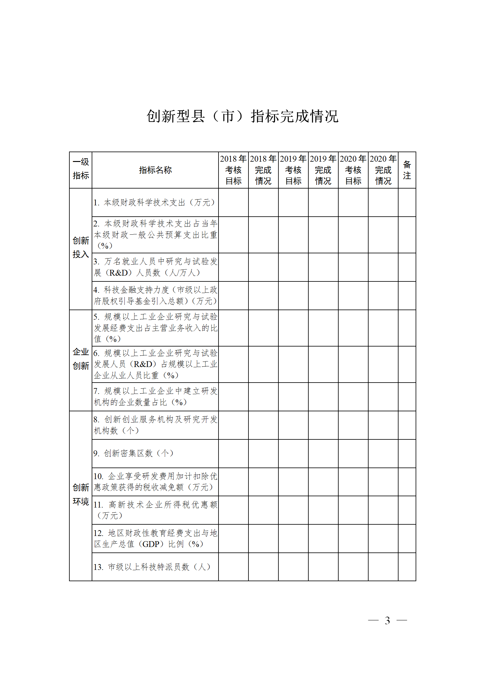 2. 各創新型縣(市)報送的建設方案、總結材料及各項指標完成情況。