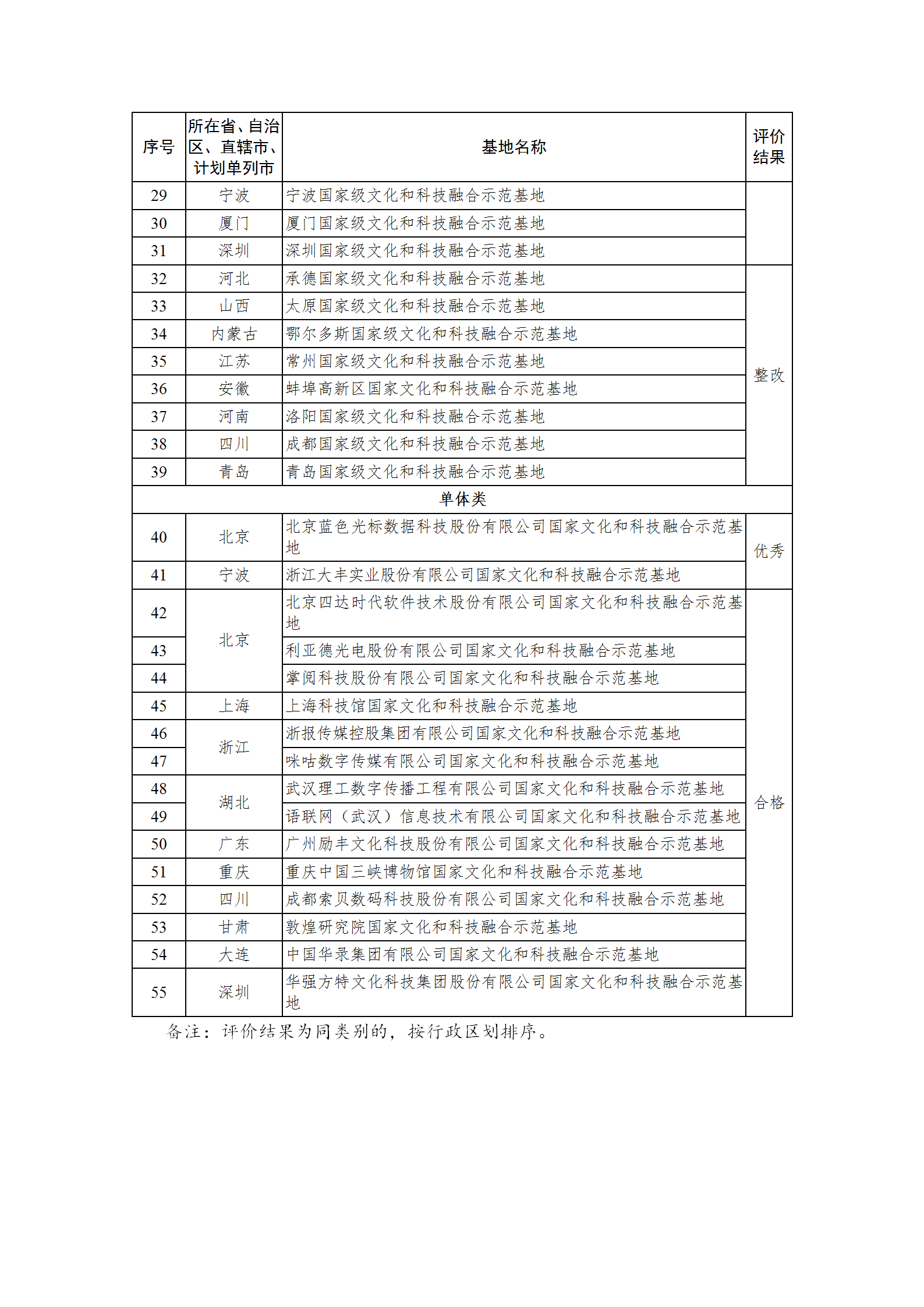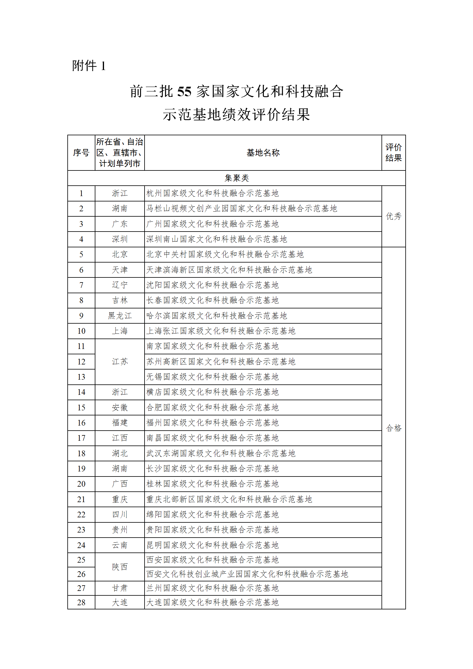 附件:1. 前三批55家國家文化和科技融合示范基地績效評價結果