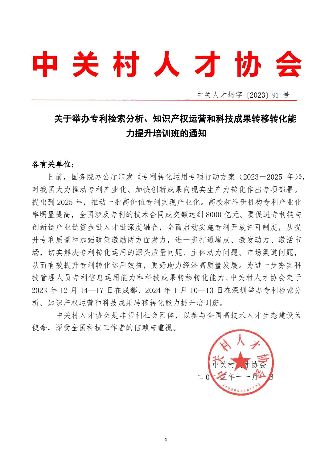 專利檢索分析、知識產權運營和科技成果轉移轉化能力提升培訓班(12月成都1月深圳)