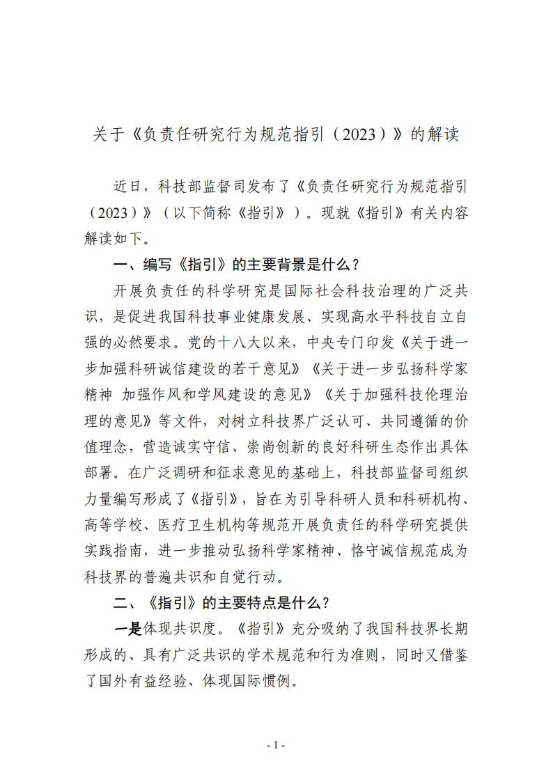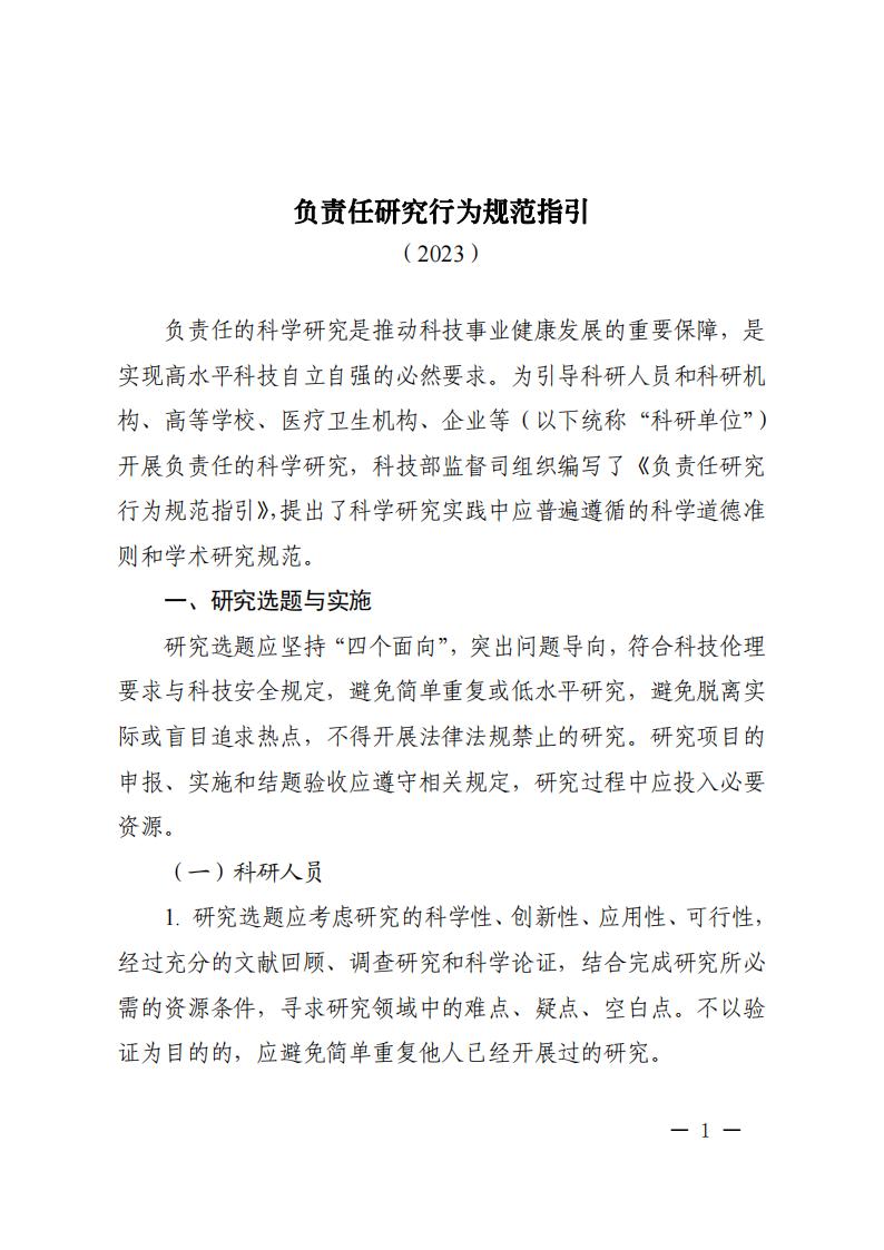 ? ? ? ?附件:1.?《負責任研究行為規范指引(2023)》
