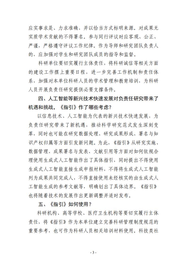 ? ? ? ? 為進一步引導科研人員和各類科研機構、高等學校、醫療衛生機構等規范開展負責任的科學研究,科技部監督司組織編寫了《負責任研究行為規范指引(2023)》,供有關部門、地方和單位在推進科技工作中參考使用。