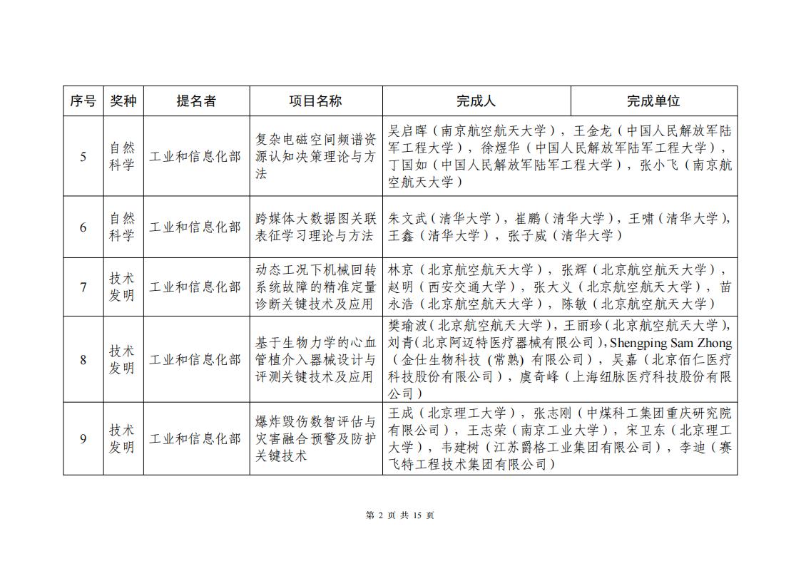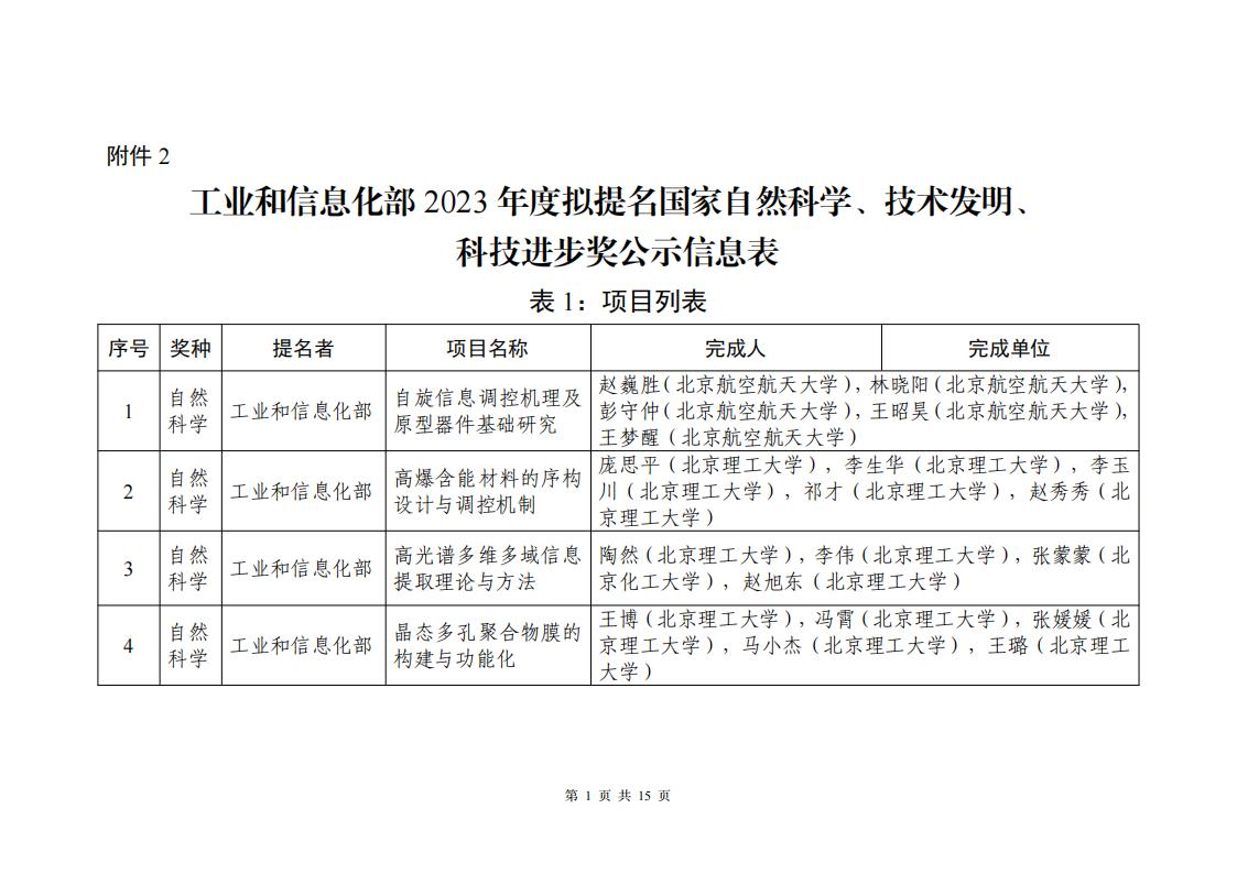 2.工業和信息化部2023年度擬提名國家自然科學、技術發明、科技進步獎公示信息表