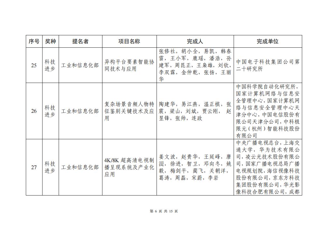 工信部|關于提名2023年度國家科學技術獎候選人和候選項目的公示