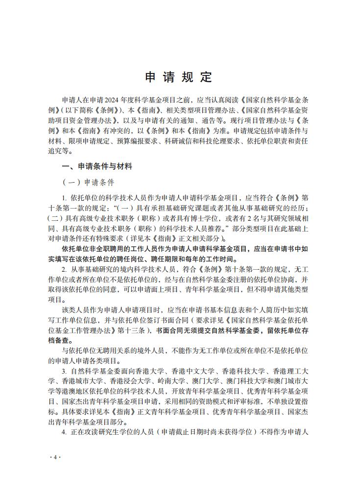 申請(qǐng)規(guī)定-節(jié)選自《2024年度國(guó)家自然科學(xué)基金項(xiàng)目指南》