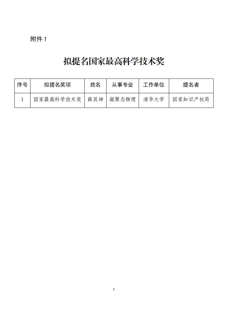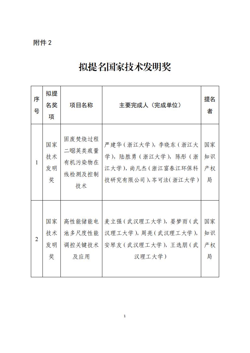 根據《國家科學技術獎勵工作辦公室關于2023年度國家科學技術獎提名工作的通知》(國科獎字〔2023〕21號)相關要求,現將國家知識產權局擬提名的國家最高科學技術獎1人、國家技術發明獎2項予以公示,公示時間為2024年1月10日至1月14日,共5天。