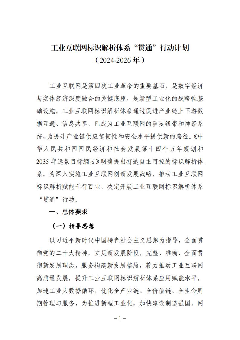 附件:《工業互聯網標識解析體系“貫通”行動計劃(2024-2026年)》
