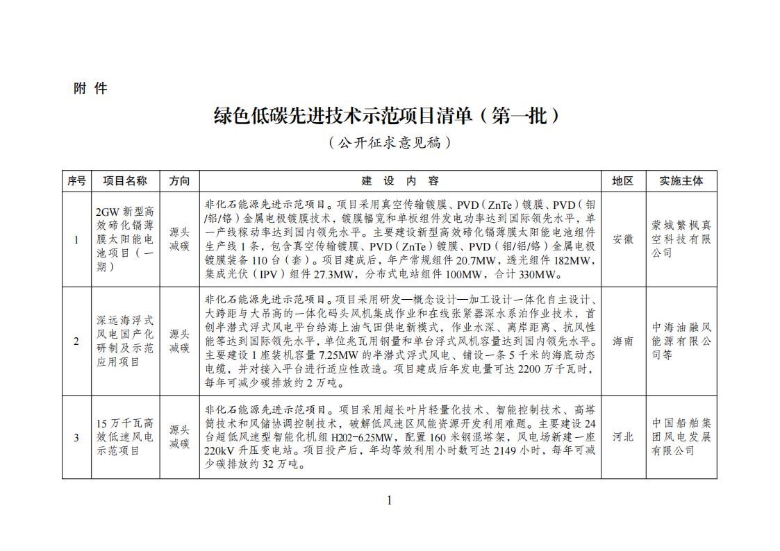 附件:綠色低碳先進(jìn)技術(shù)示范項(xiàng)目清單(第一批)(公開征求意見稿)