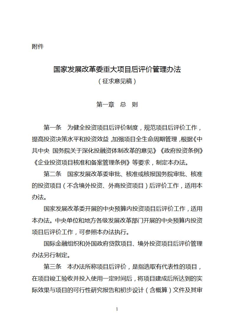 發改委|《國家發展改革委重大項目后評價管理辦法(征求意見稿)》