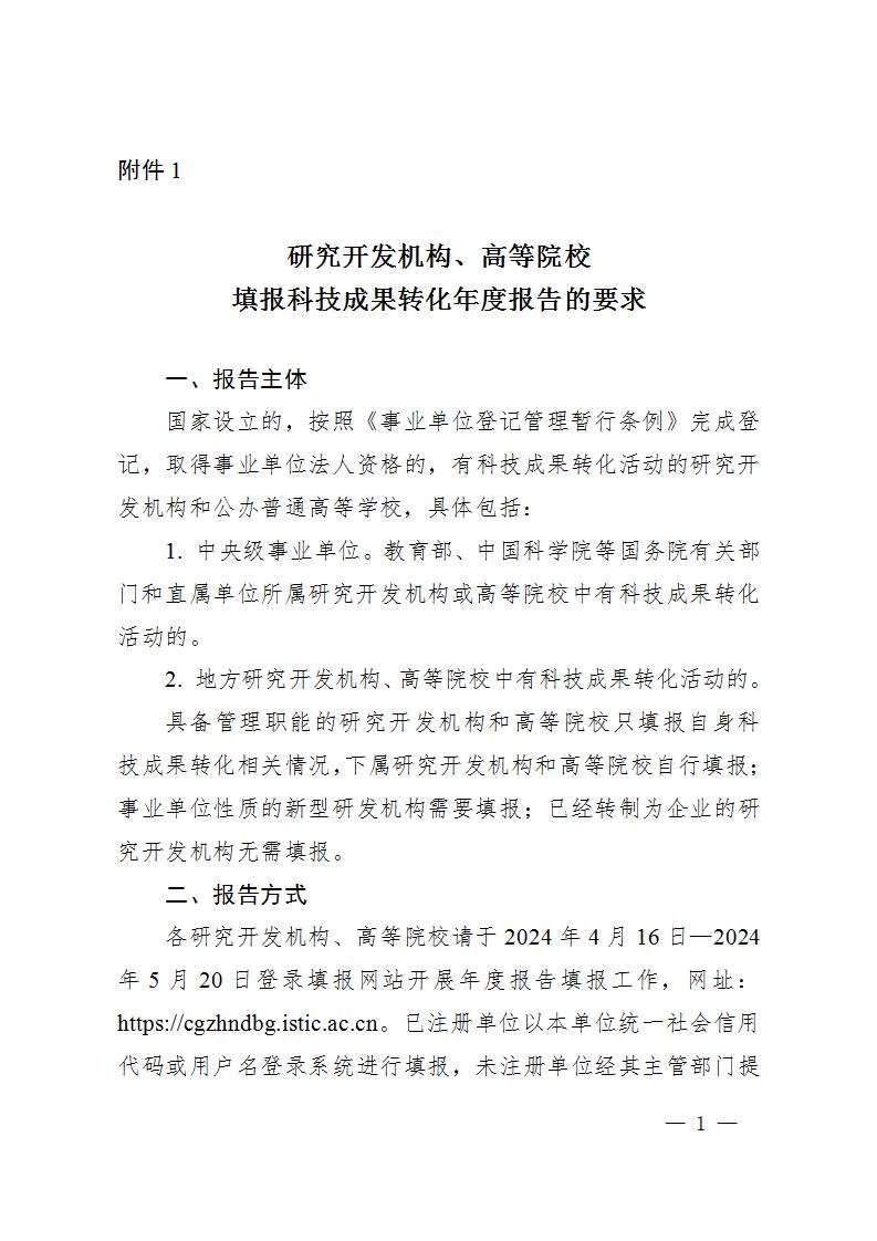 附件:1.研究開發(fā)機(jī)構(gòu)、高等院校填報科技成果轉(zhuǎn)化年度報告的要求