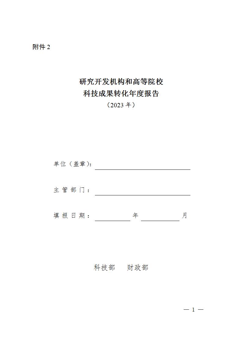 科技部辦公廳 財政部辦公廳關(guān)于開展2023年度科技成果轉(zhuǎn)化年度報告工作的通知