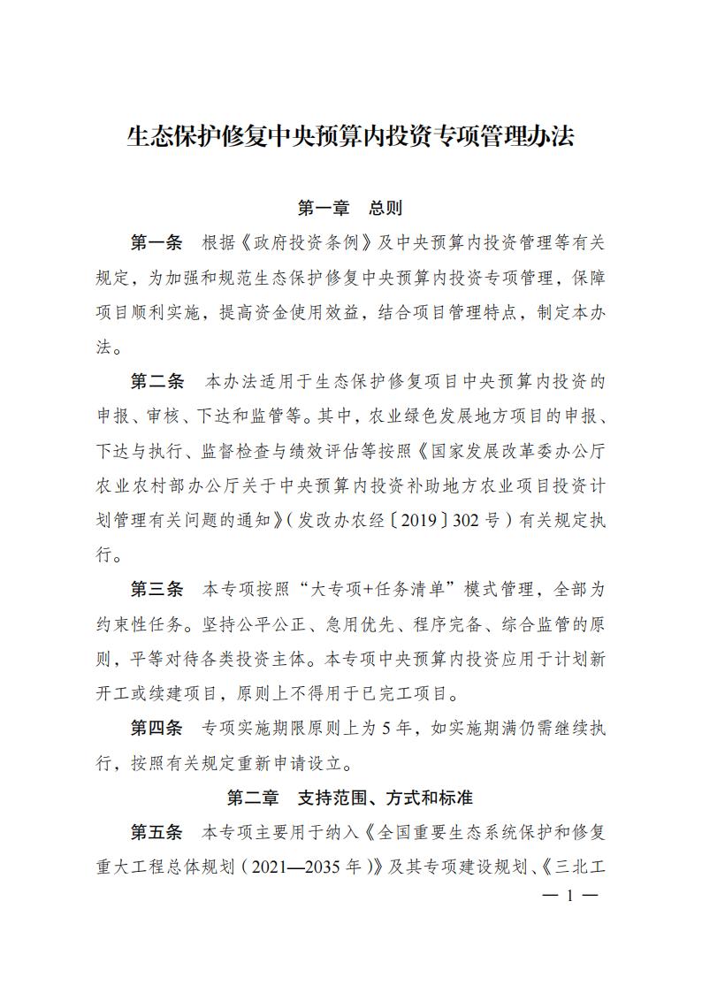 國家發(fā)展改革委關(guān)于印發(fā)生態(tài)保護(hù)修復(fù)中央預(yù)算內(nèi)投資專項(xiàng)管理辦法的通知