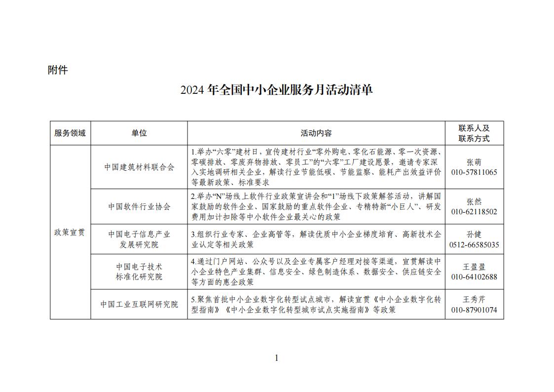 工業和信息化部辦公廳關于開展2024年全國中小企業服務月活動的通知