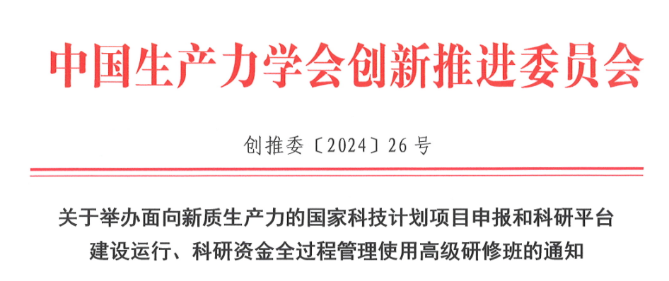 關于舉辦面向新質生產力的國家科技計劃項目申報和科研平臺建設運行、科研資金全過程管理使用高級研修班的通知
