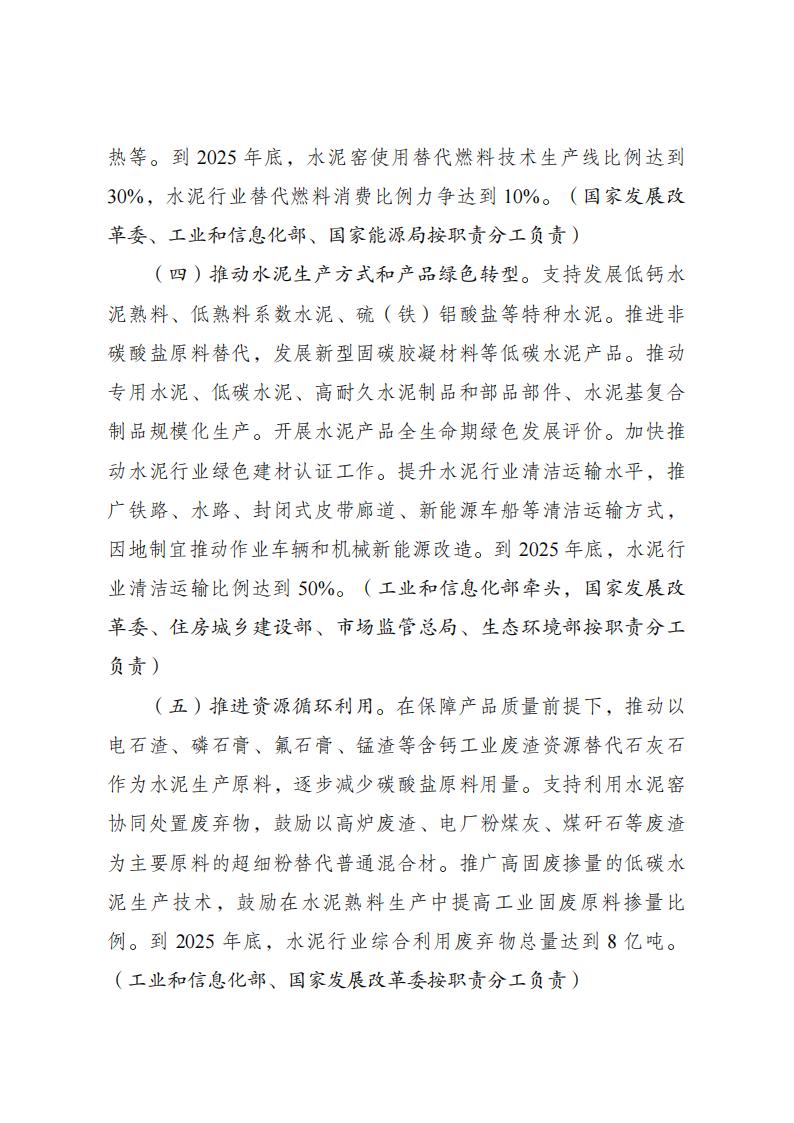國家發(fā)改委等五部門關于印發(fā) 《水泥行業(yè)節(jié)能降碳專項行動計劃》的通知