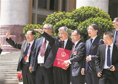 6月24日上午,全國科技大會、國家科學(xué)技術(shù)獎勵大會、兩院院士大會在京召開。圖為獲獎人員在人民大會堂前合影留念。