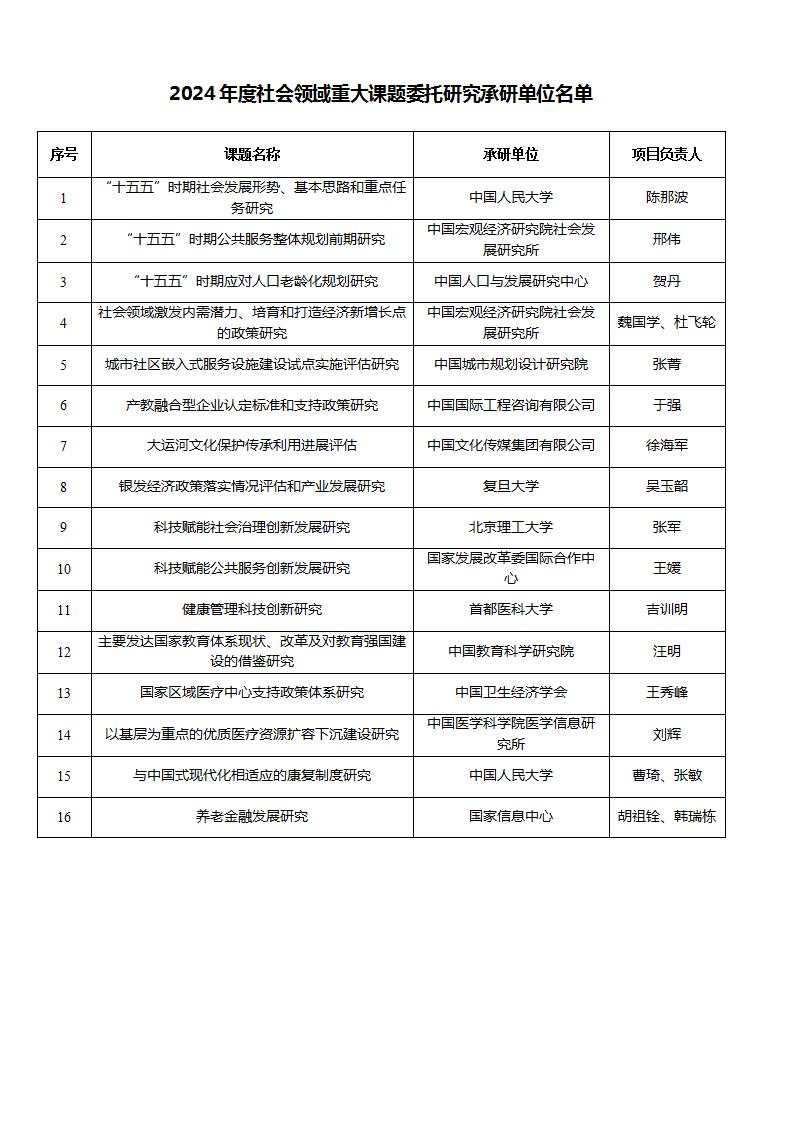 附件:2024年度社會(huì)領(lǐng)域重大課題委托研究承研單位名單