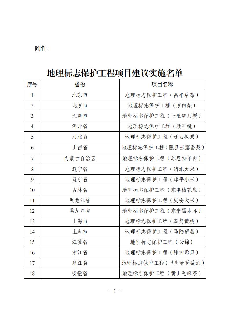 附件:地理標(biāo)志保護(hù)工程項(xiàng)目建議實(shí)施名單