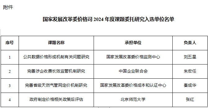 國家發改委價格司關于2024年度課題委托研究入選單位的公告