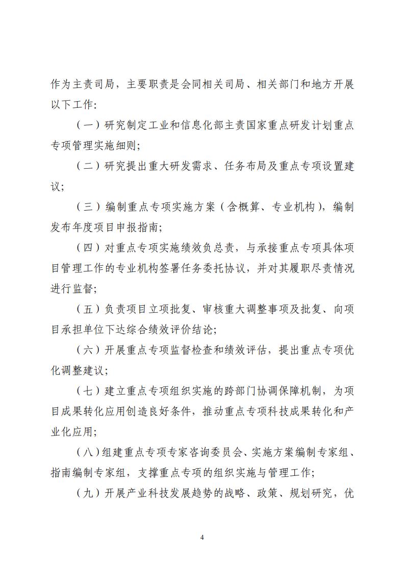 工業和信息化部辦公廳關于印發《工業和信息化部主責國家重點研發計劃重點專項管理實施細則》的通知