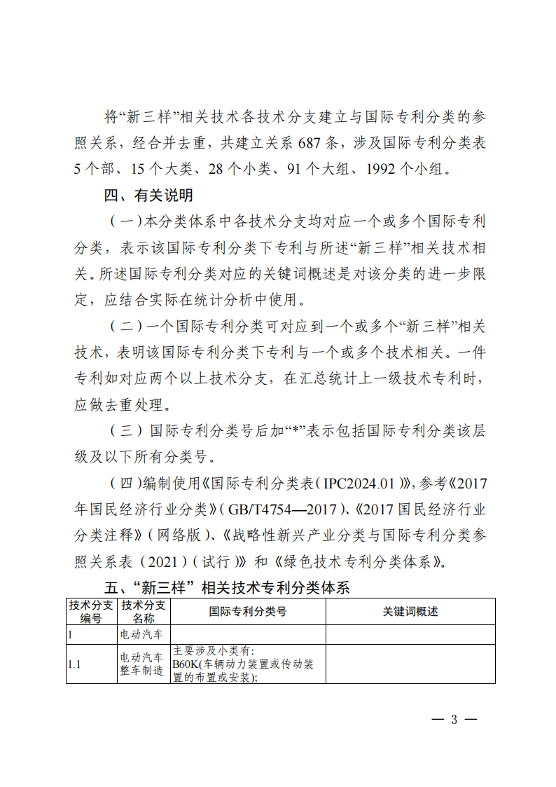 現(xiàn)將編制的《“新三樣”相關(guān)技術(shù)專利分類體系(2024)》印發(fā)給你們,請結(jié)合實際在工作中參照使用。