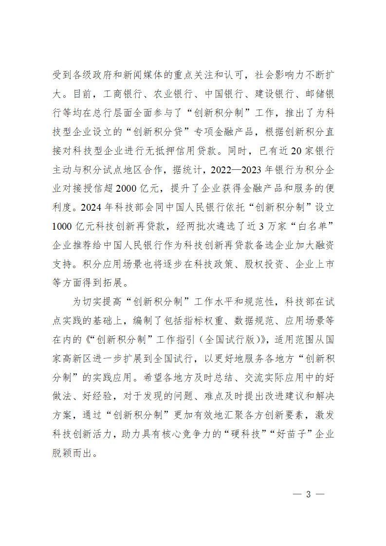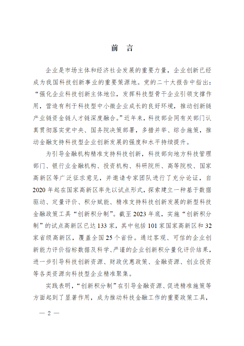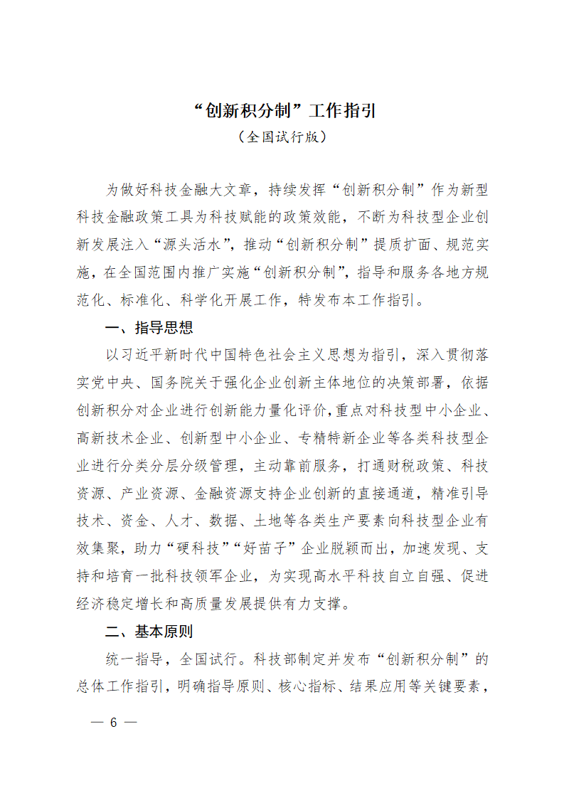 為做好科技金融大文章,持續發揮“創新積分制”為科技型企業賦能的政策效能,推動“創新積分制”提質擴面和規范實施,指導服務各地方開展工作,現將《“創新積分制”工作指引(全國試行版)》印發給你們,請參照執行。工作中遇有問題和意見建議,請及時反饋我們