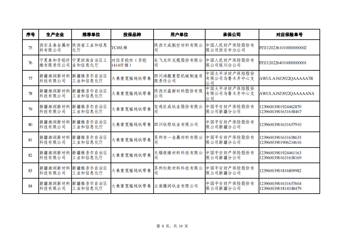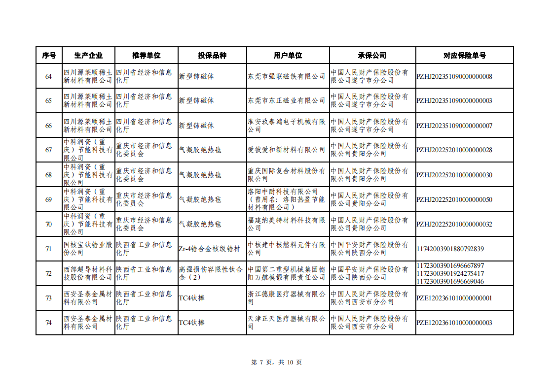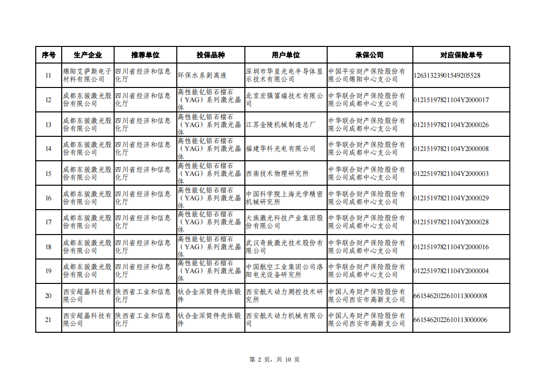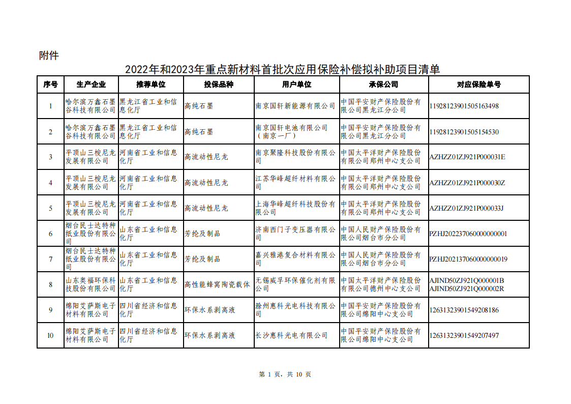 附件:2022年和2023年重點新材料首批次應用保險補償擬補助項目清單