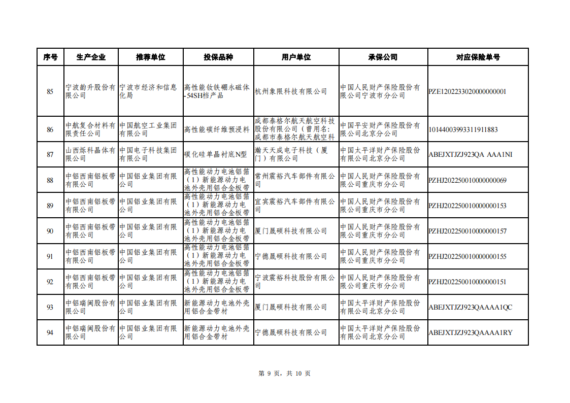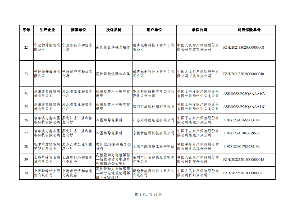 工信部|2022年和2023年重點新材料首批次應用保險補償擬補助項目公示