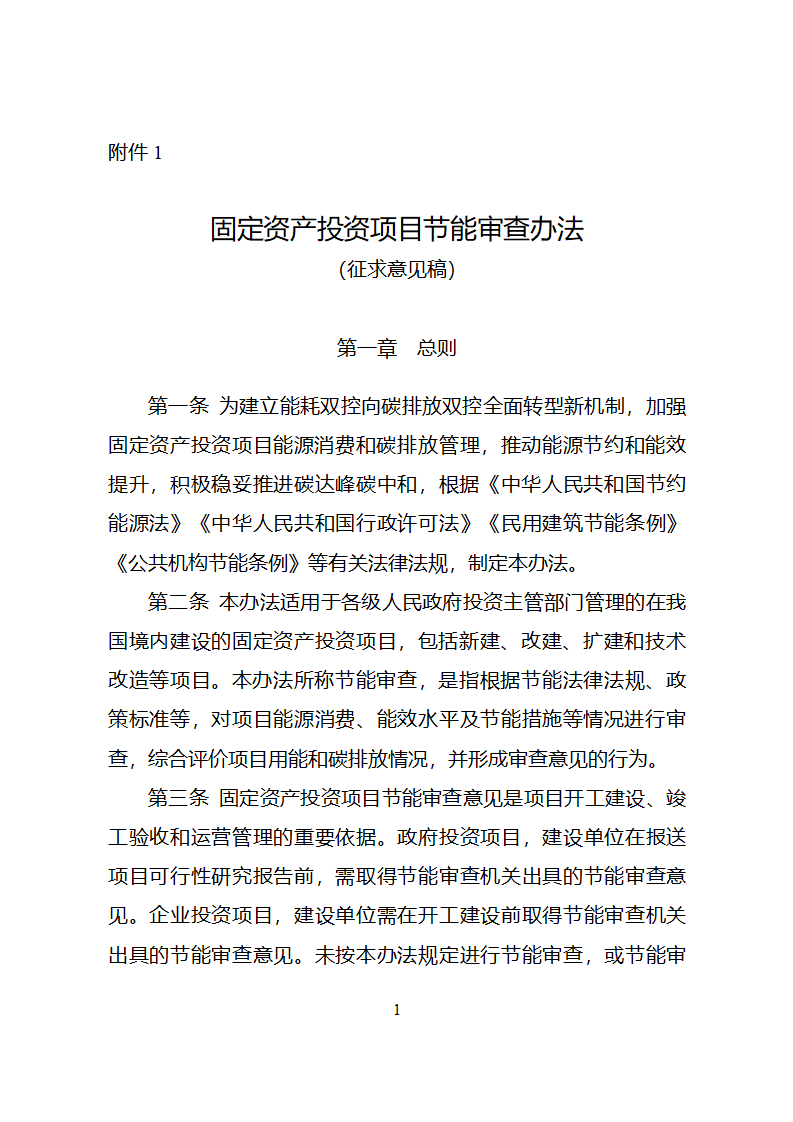 國家發改委|《固定資產投資項目節能審查辦法(征求意見稿)》征求意見公告