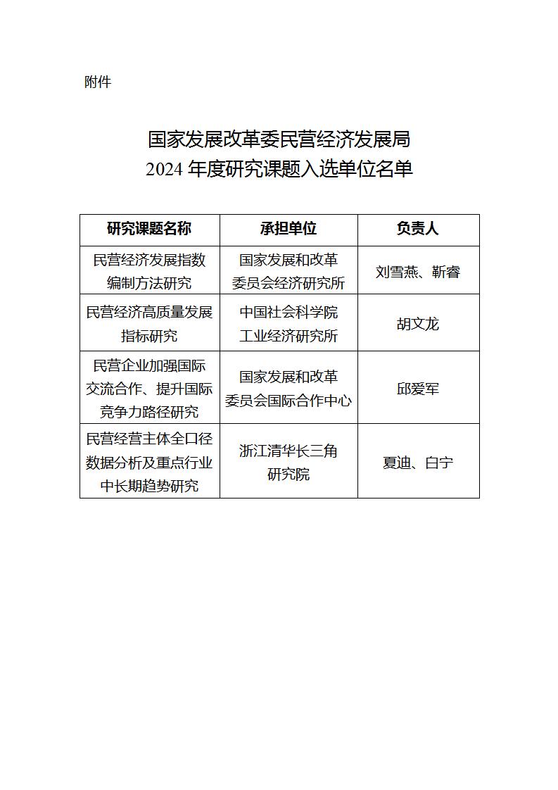 國家發(fā)改委民營經(jīng)濟(jì)發(fā)展局關(guān)于2024年度研究課題入選單位的公告
