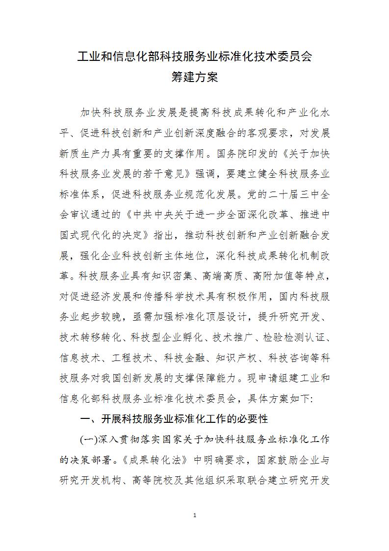 附件:工業(yè)和信息化部科技服務(wù)業(yè)標(biāo)準(zhǔn)化技術(shù)委員會籌建方案