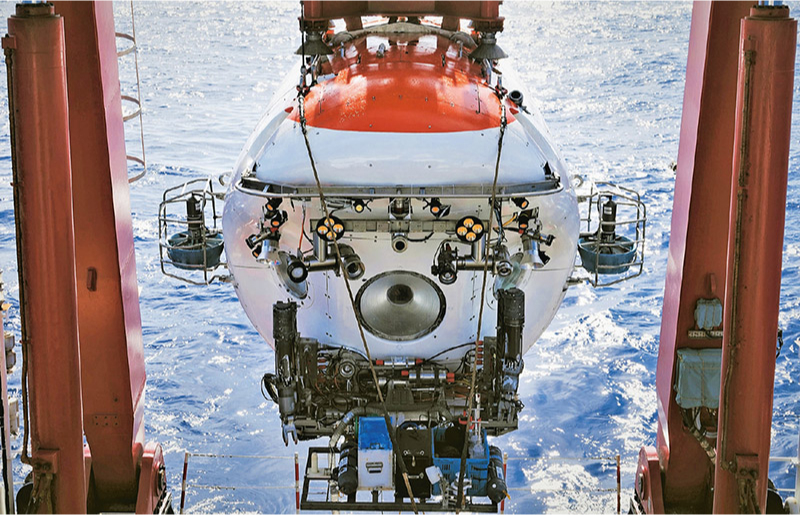 圖為2024年9月11日,“蛟龍號”結束下潛返回“深海一號”船后甲板。當日,“蛟龍號”載人潛水器在維嘉海山完成2024西太平洋國際航次科考最后一個潛次下潛作業。科考期間,“蛟龍號”在西太平洋海域完成了18次下潛作業,搭載十余名中外科學家探索深海。 新華社記者 王聿昊/攝