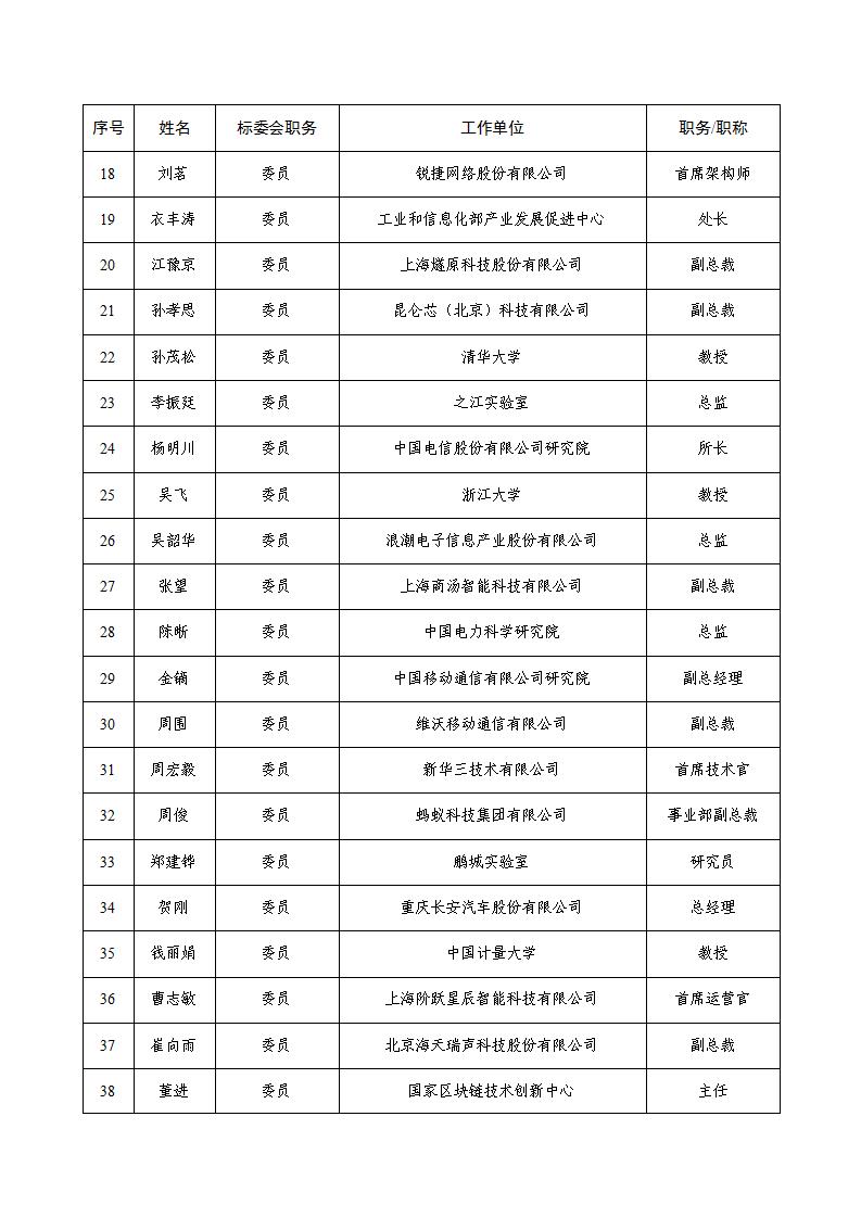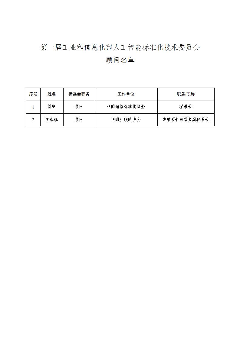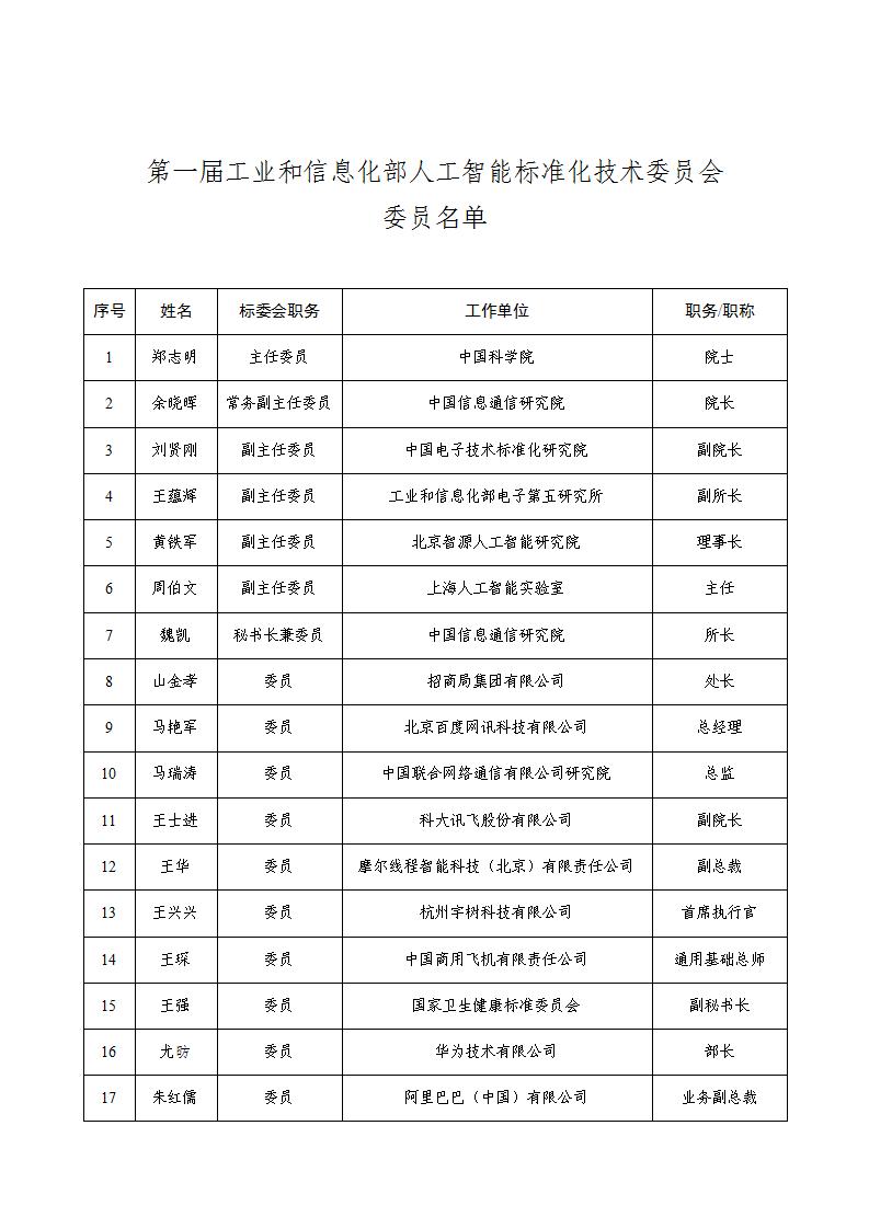 工業和信息化部人工智能標準化技術委員會委員名單公示