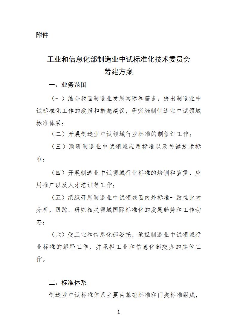 工業和信息化部制造業中試標準化技術委員會籌建方案公示