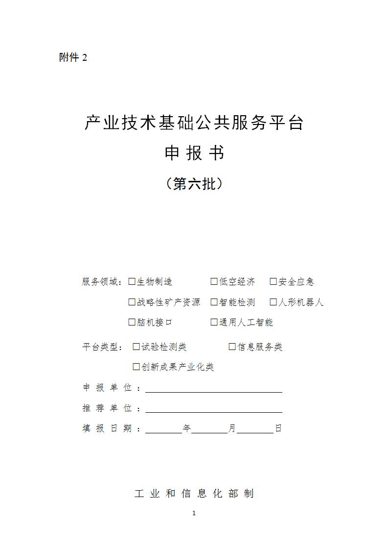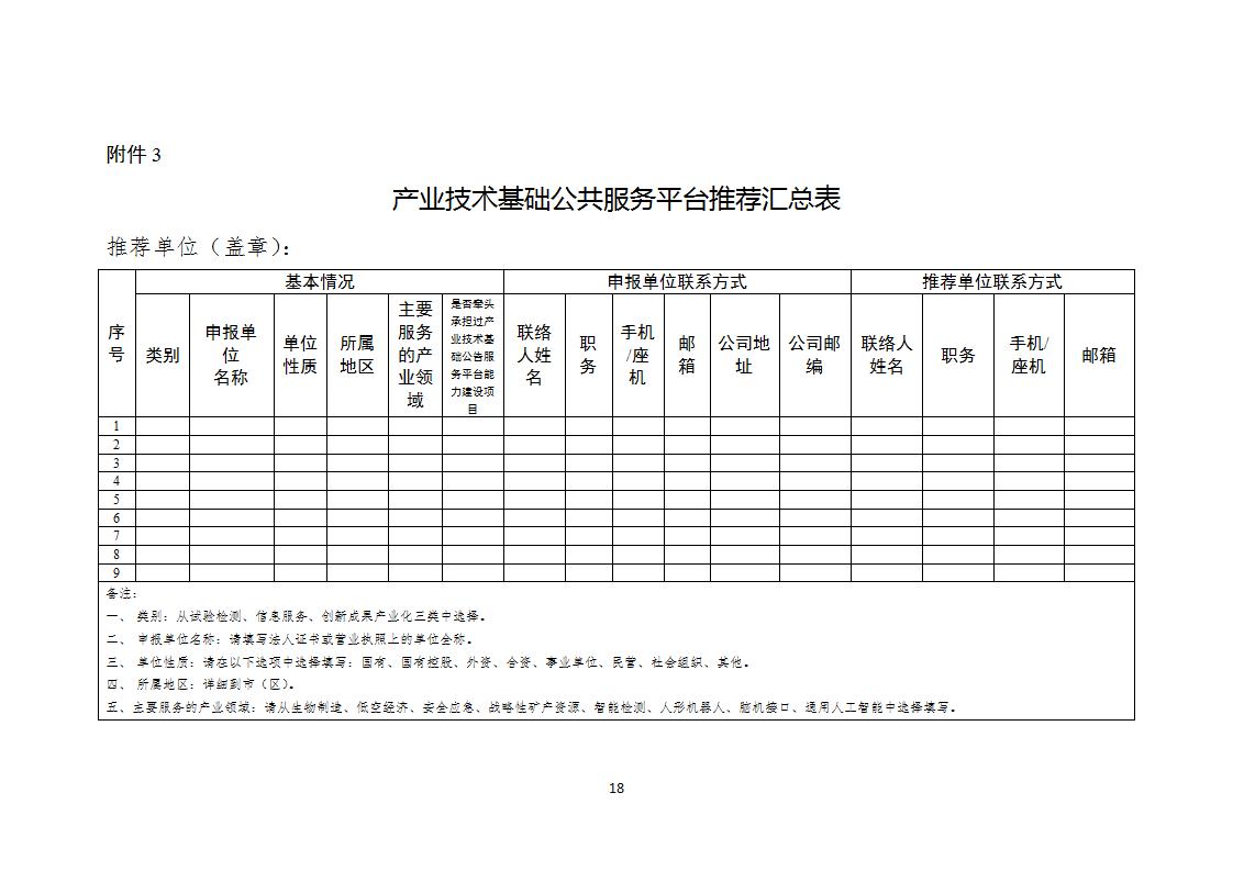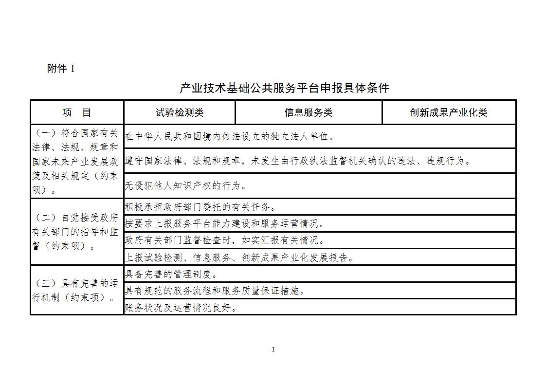 附件:產業技術基礎公共服務平臺申報具體條件、申報書、推薦匯總表