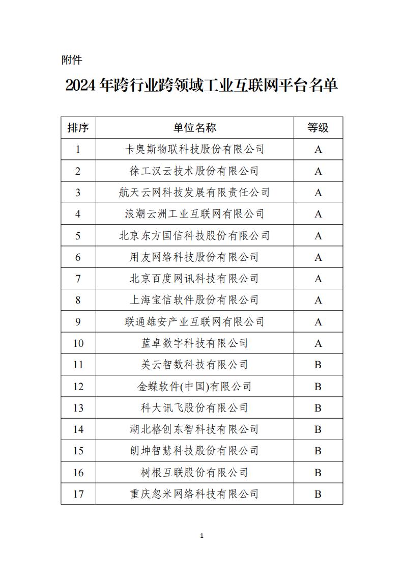 附件:2024年跨行業跨領域工業互聯網平臺名單