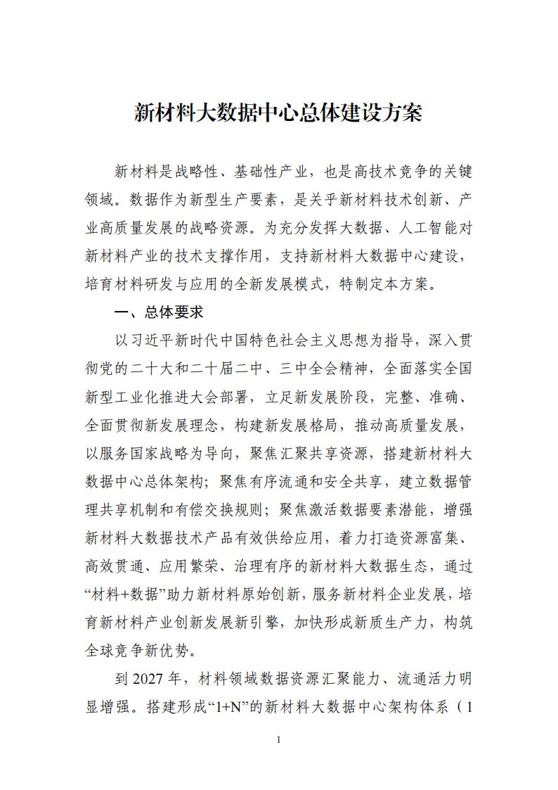 工業(yè)和信息化部?財政部 國家數(shù)據(jù)局關(guān)于印發(fā)《新材料大數(shù)據(jù)中心總體建設(shè)方案》的通知