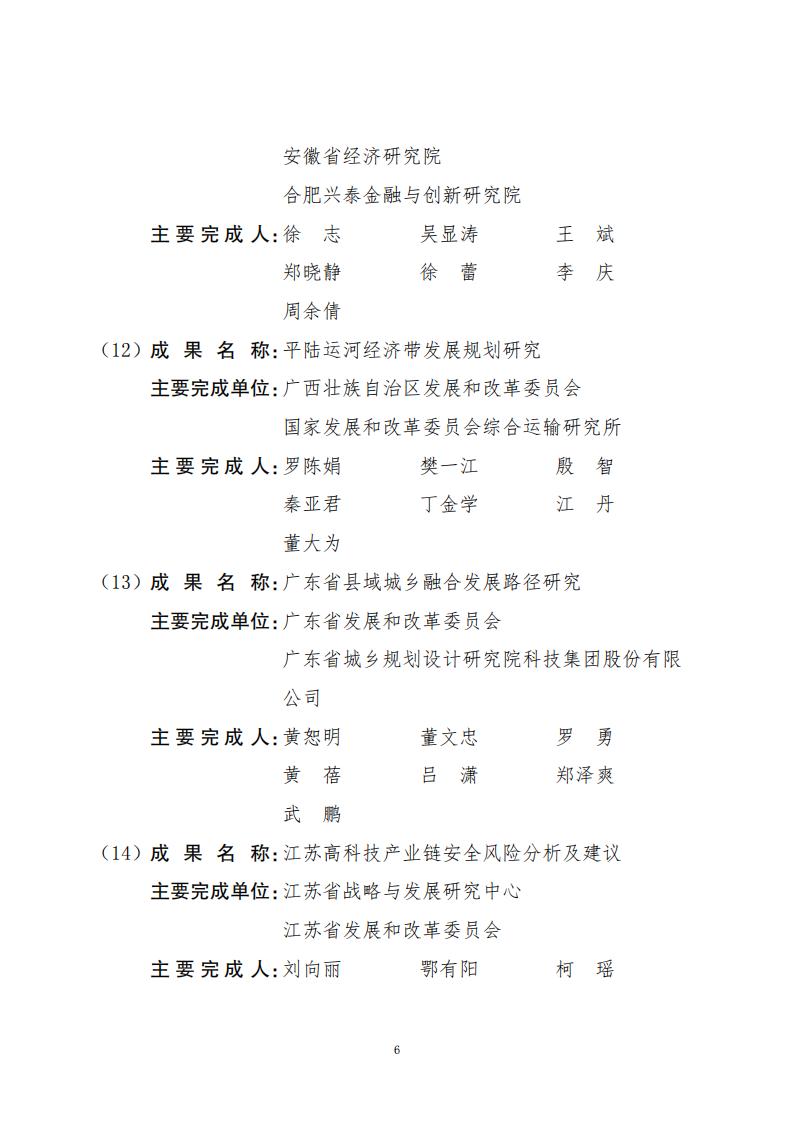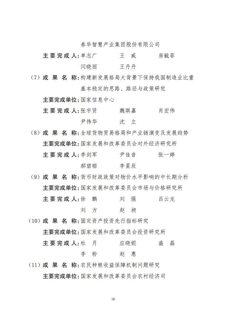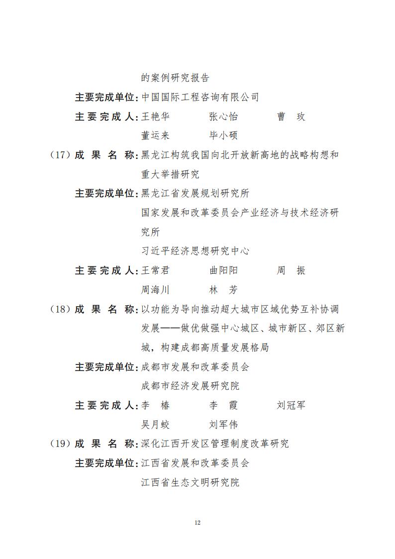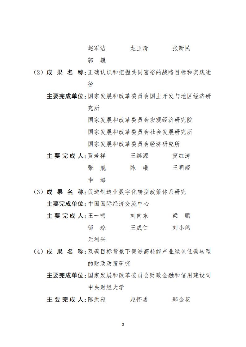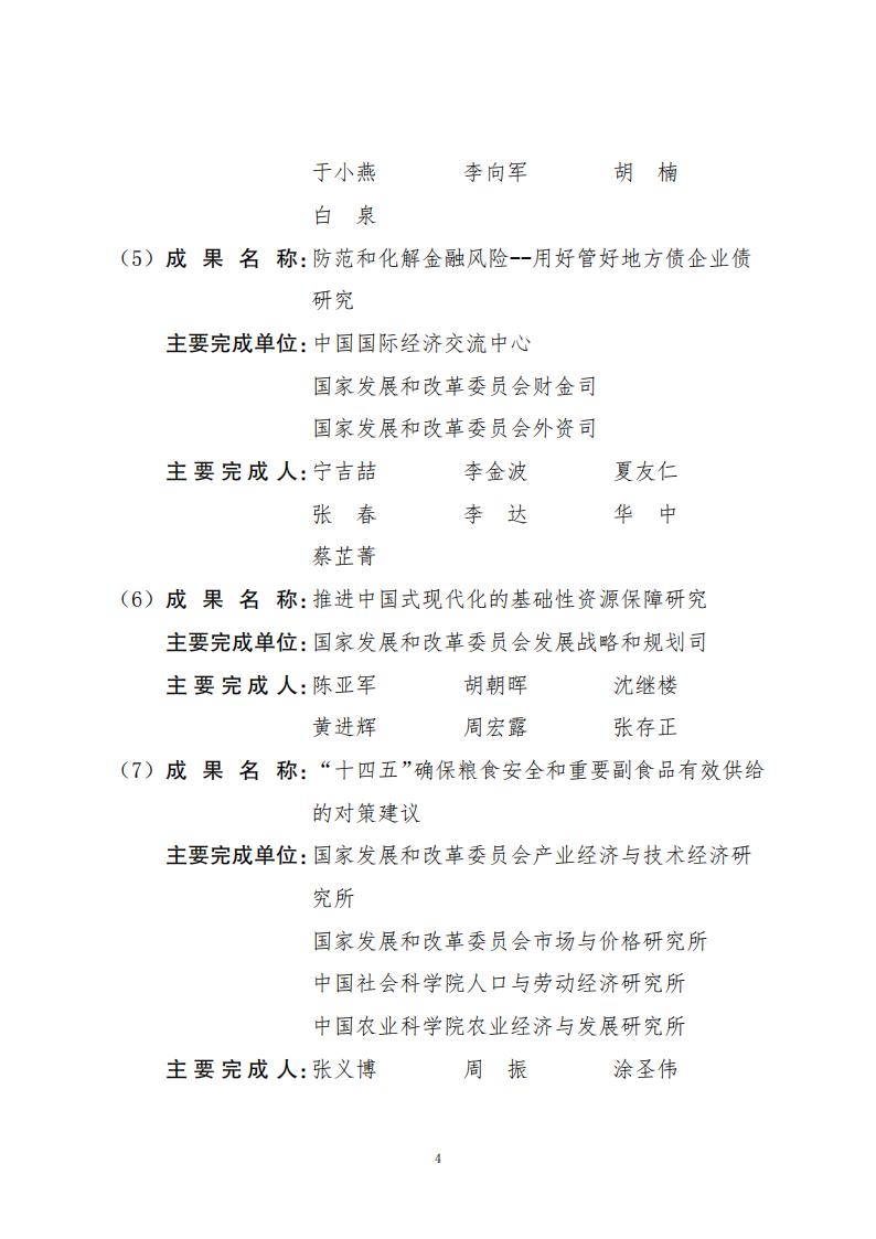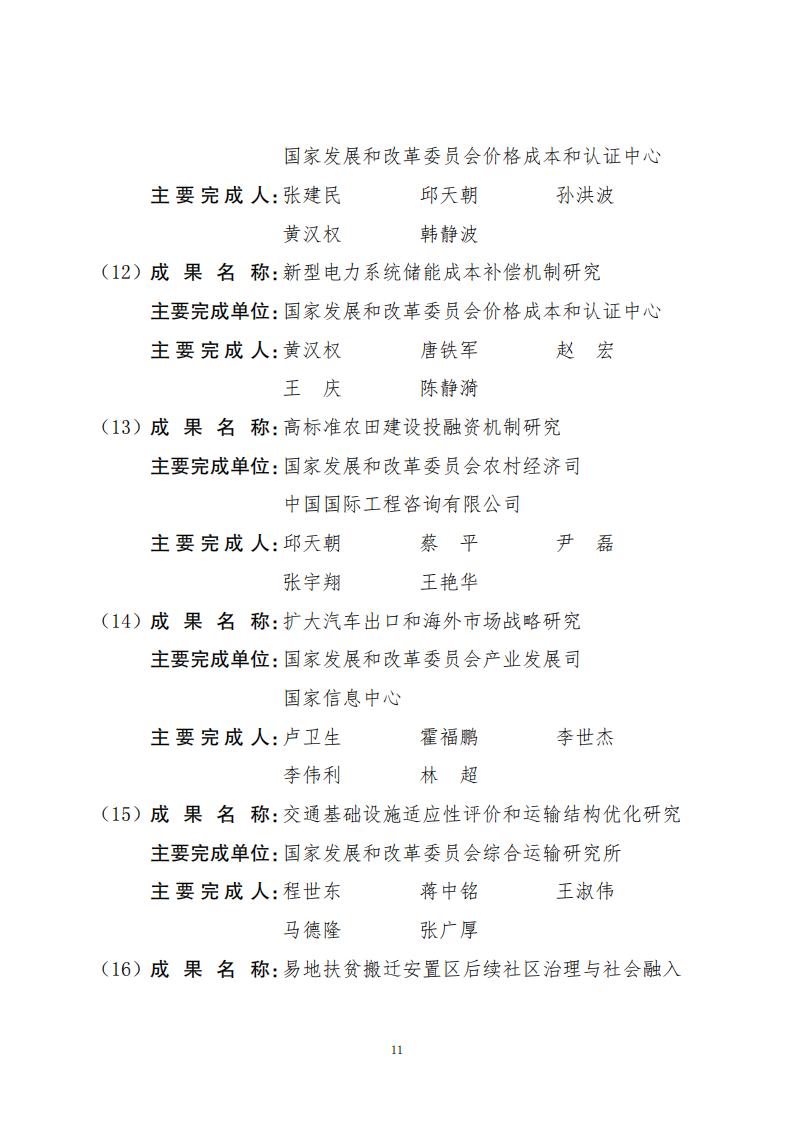 關于2023年度國家發展和改革委員會優秀研究成果獲獎名單的公示