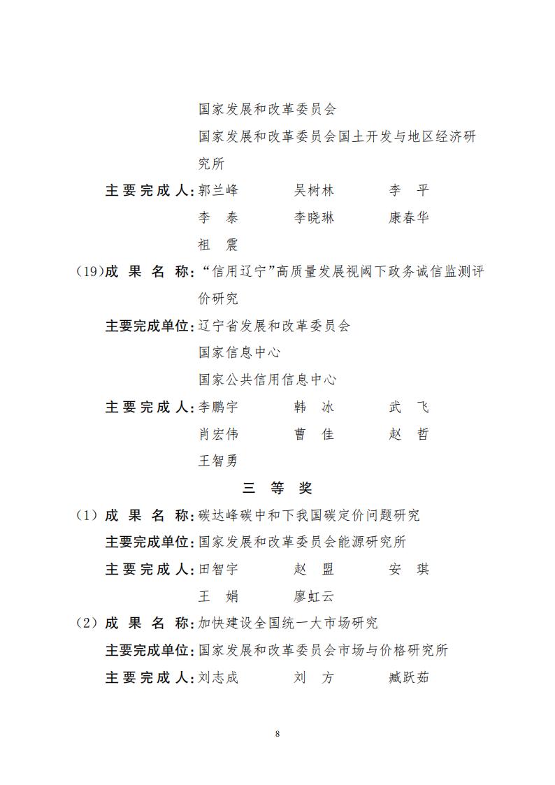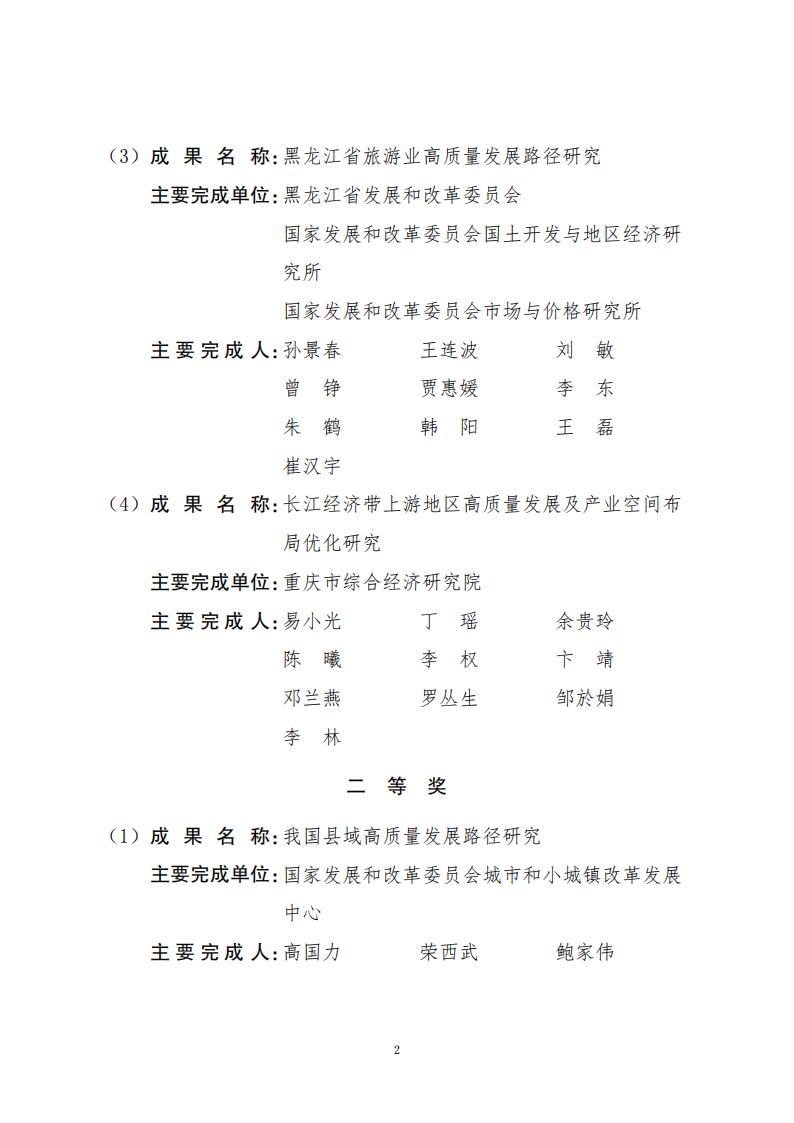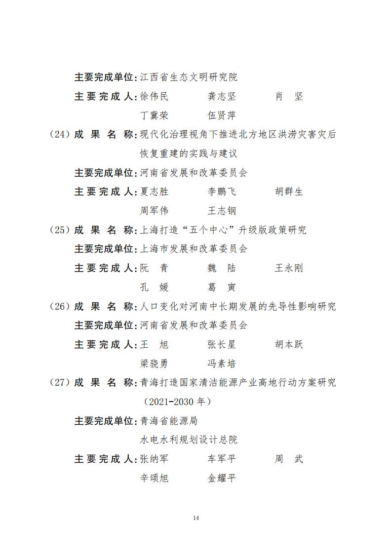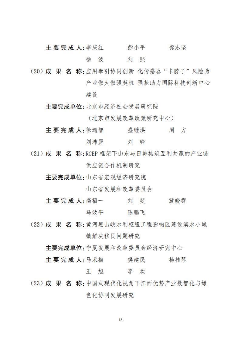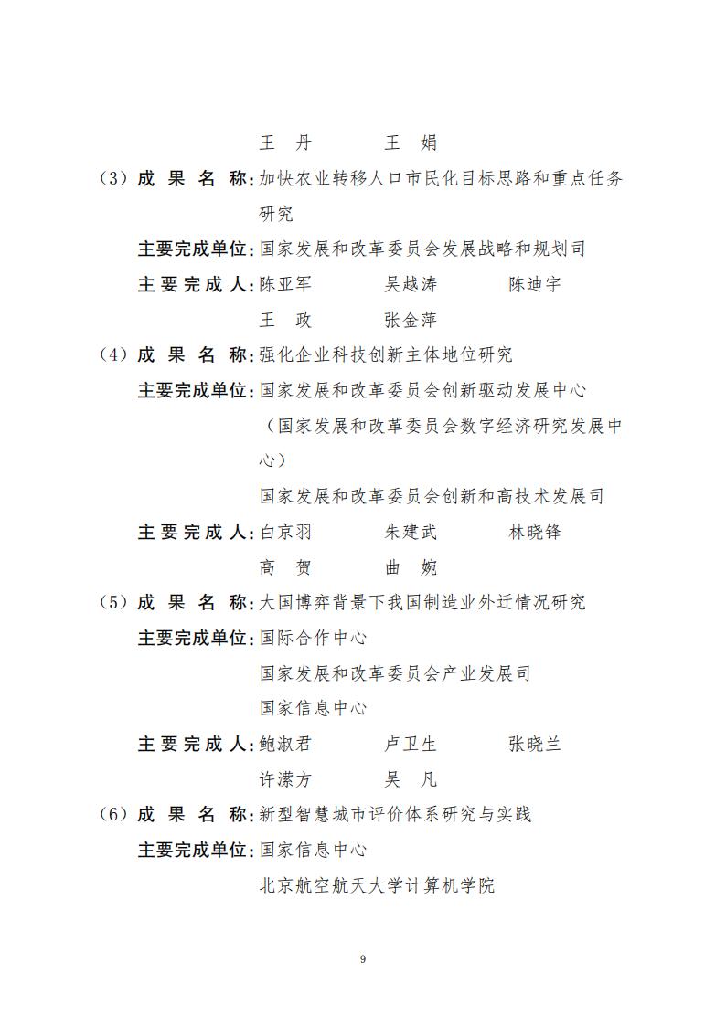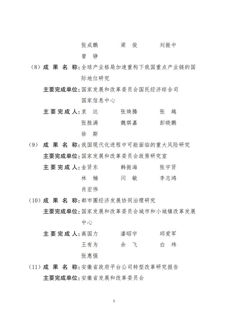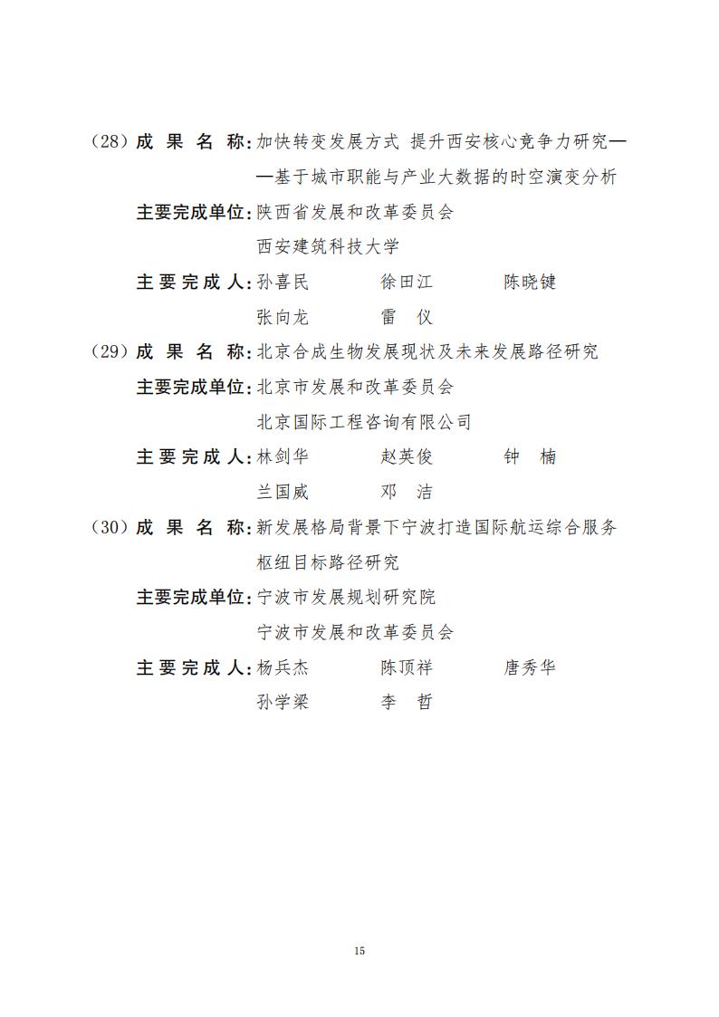 關于2023年度國家發展和改革委員會優秀研究成果獲獎名單的公示