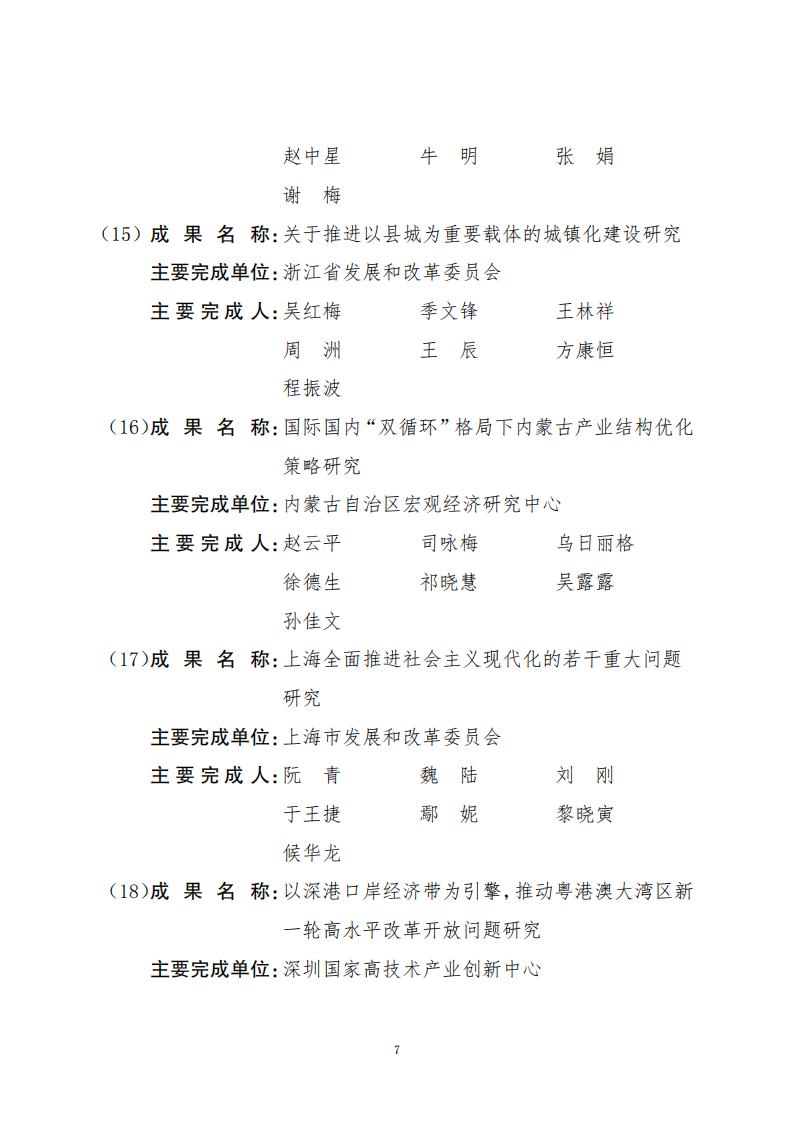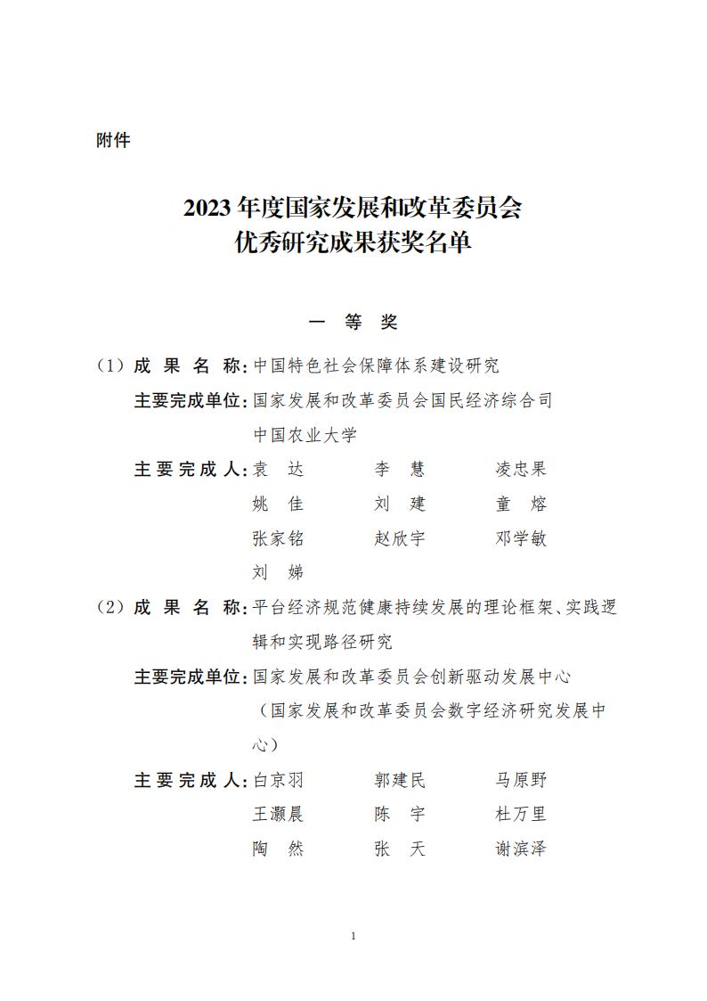 附件:2023年度國家發展和改革委員會優秀研究成果獲獎名單