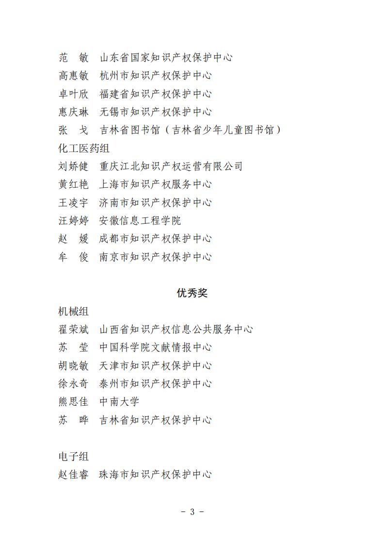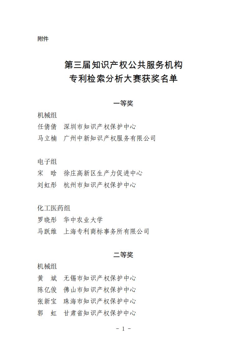 國家知識產權局|關于公布第三屆知識產權公共服務機構專利檢索分析大賽獲獎名單的通知